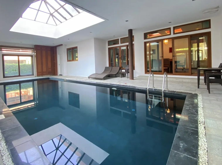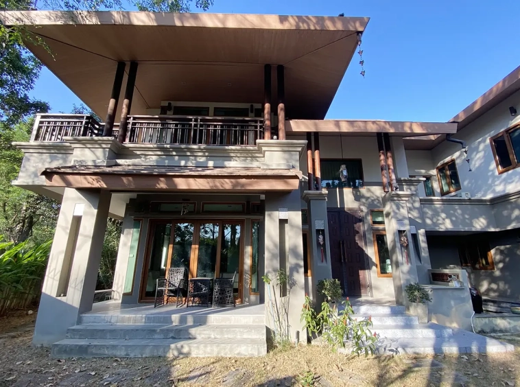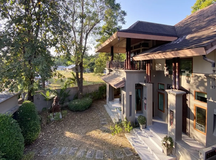 Magnificent 4 bedroom 6 bathroom house with pool for sale fully furnished in an exclusive estate in Hang Dong, just south of Chiang Mai centre. Located off the Canal Road it is very convenient for shopping, restaurants, international schools and easy to connect to other parts of town. Less than 20 minutes drive to the airport and downtown Chiang Mai.