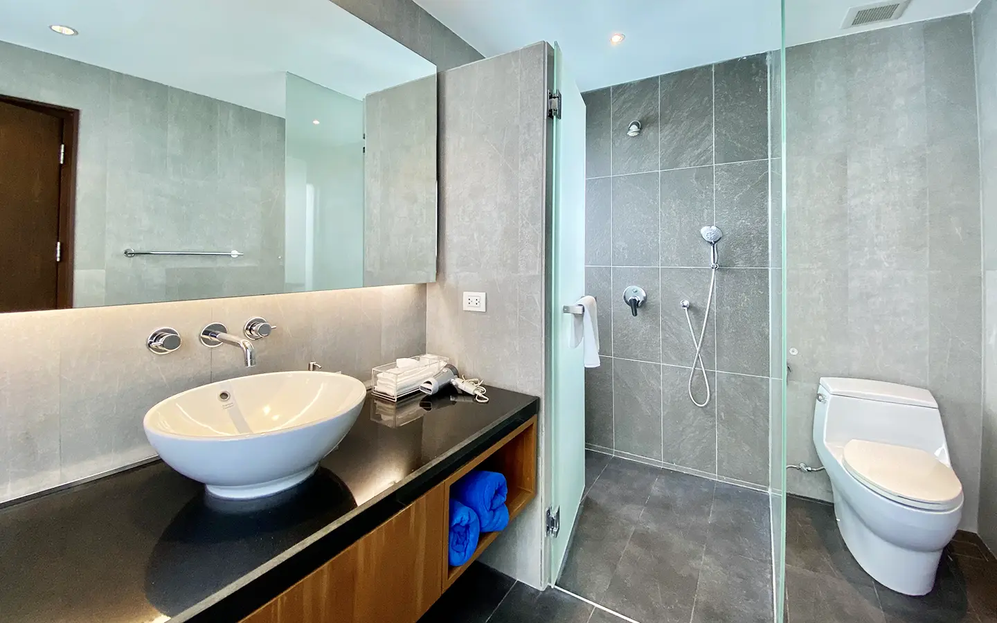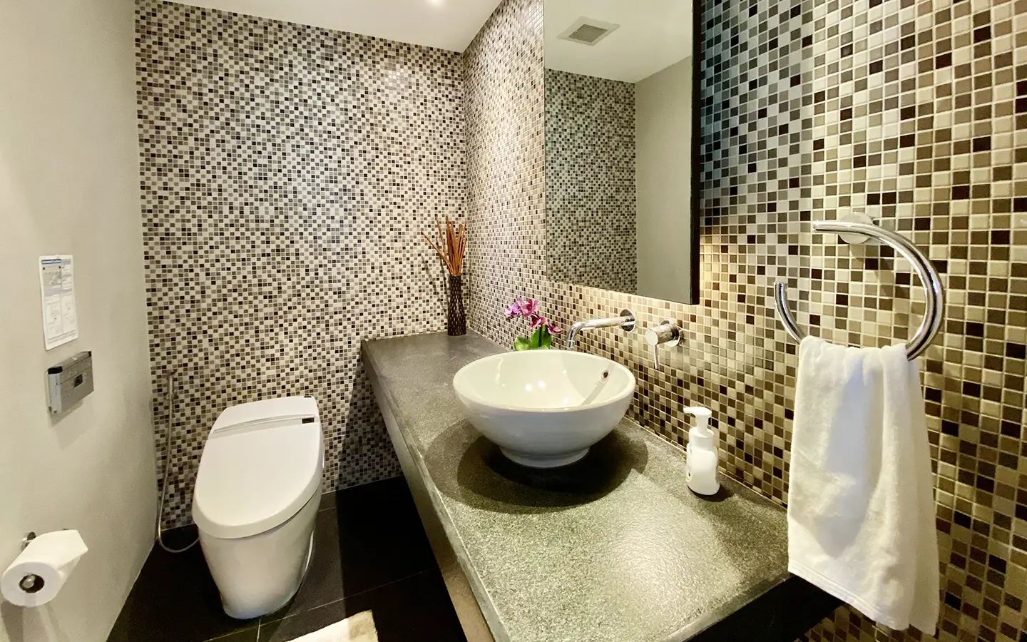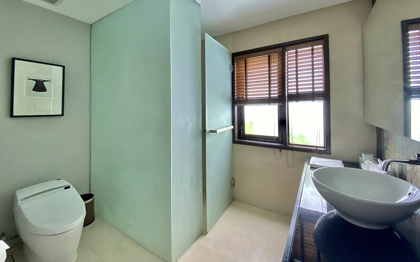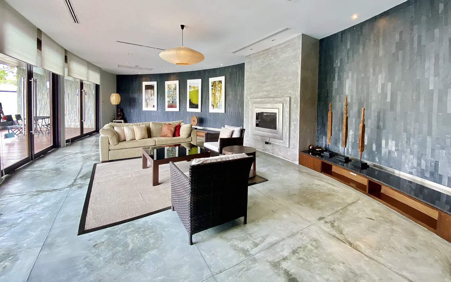 All fenced in with well-maintained hedges, the house sits away from the main gate and covered parking surrounded by beautiful lawn and flowery trees. At the main entrance, there is a koi pond and doors open to a foyer then some steps to the main living room where there is wall to ceiling windows giving panoramic views of the swimming pool and door access to a covered sitting deck area outside. Back to the foyer, there is a staircase leading to another loft-style sitting area, a shared guest bathroom and access to the balcony with a gorgeous mountain view. Back to the foyer again and going a few steps down, there is a dining room, storage room, and large separate fully fitted Western kitchen with built-in appliances completed with a washer and dryer. Just outside the kitchen at the rear is the maid's room.