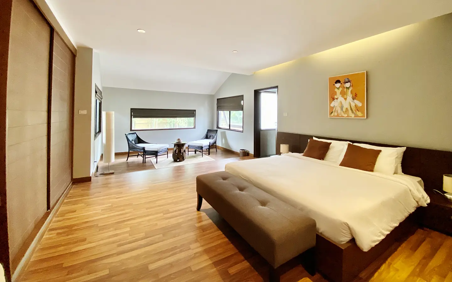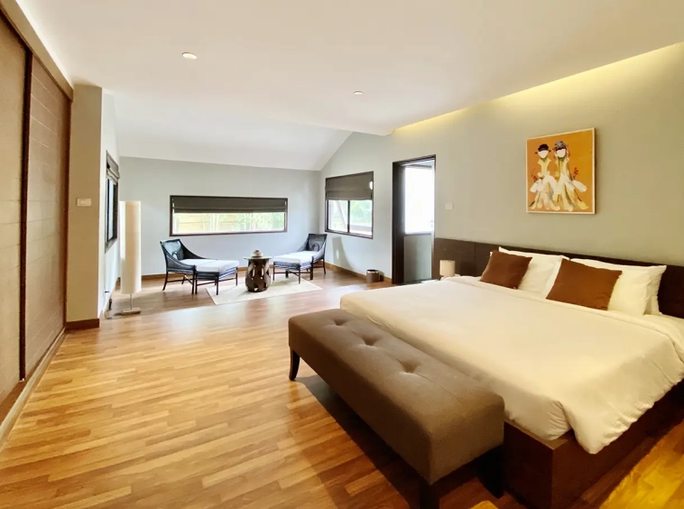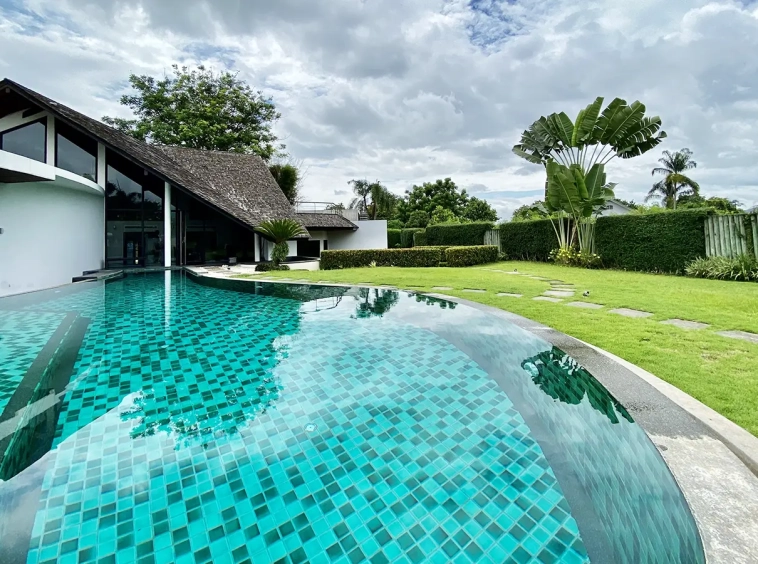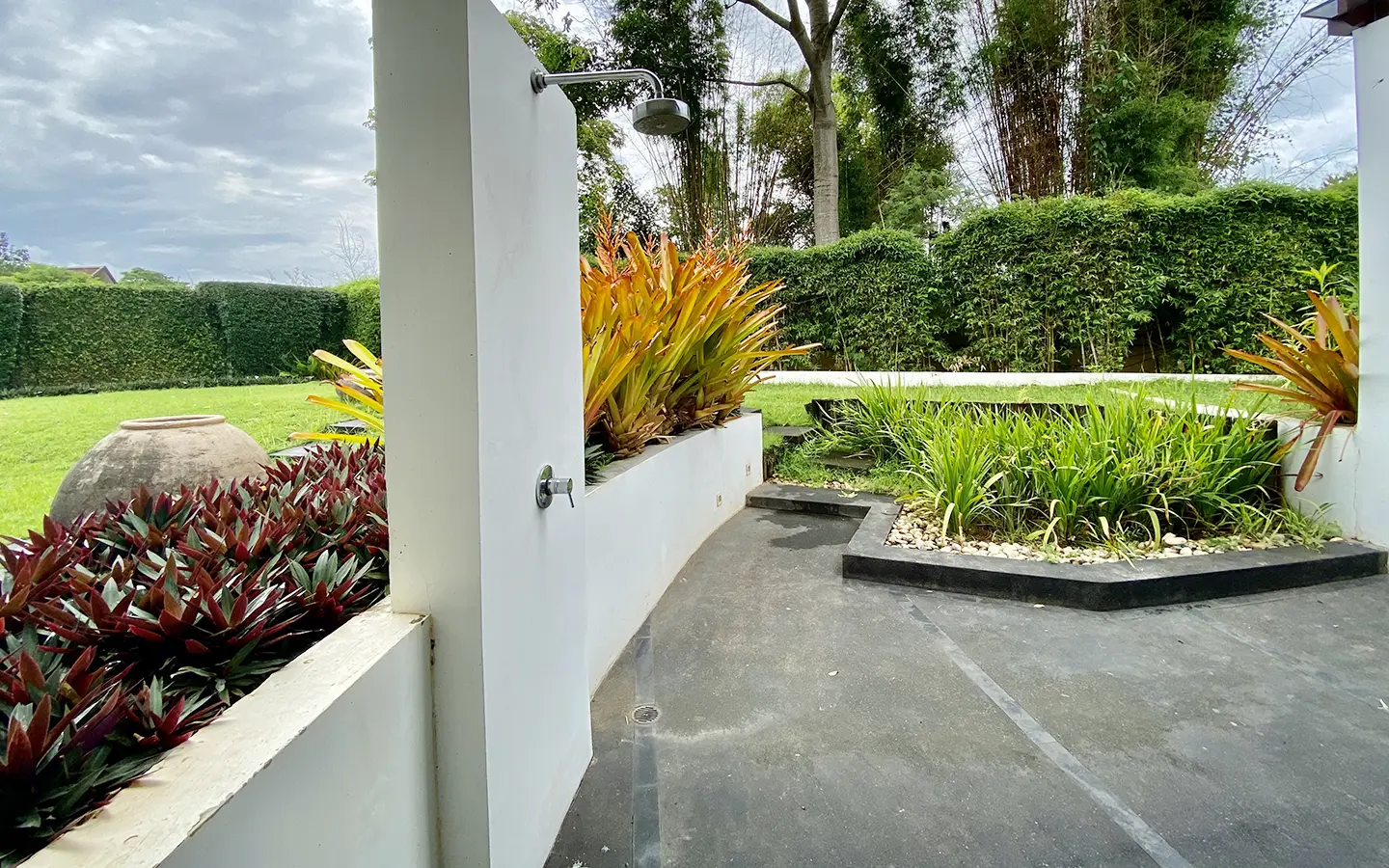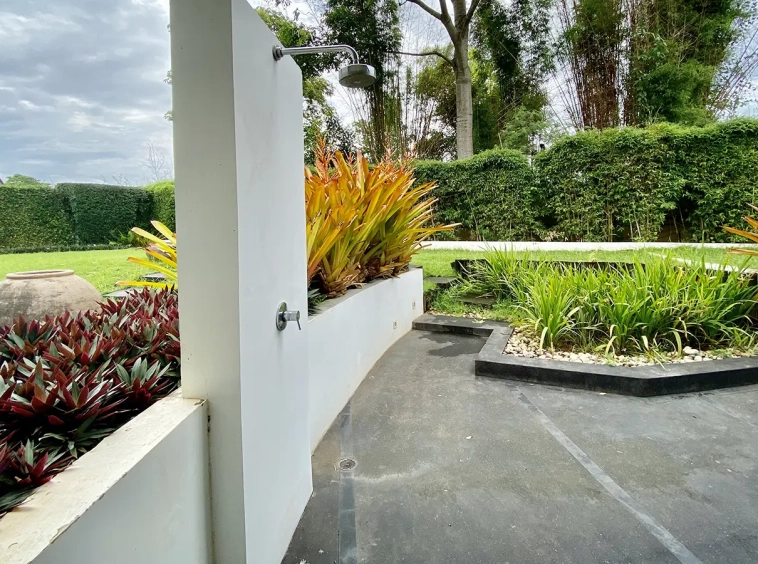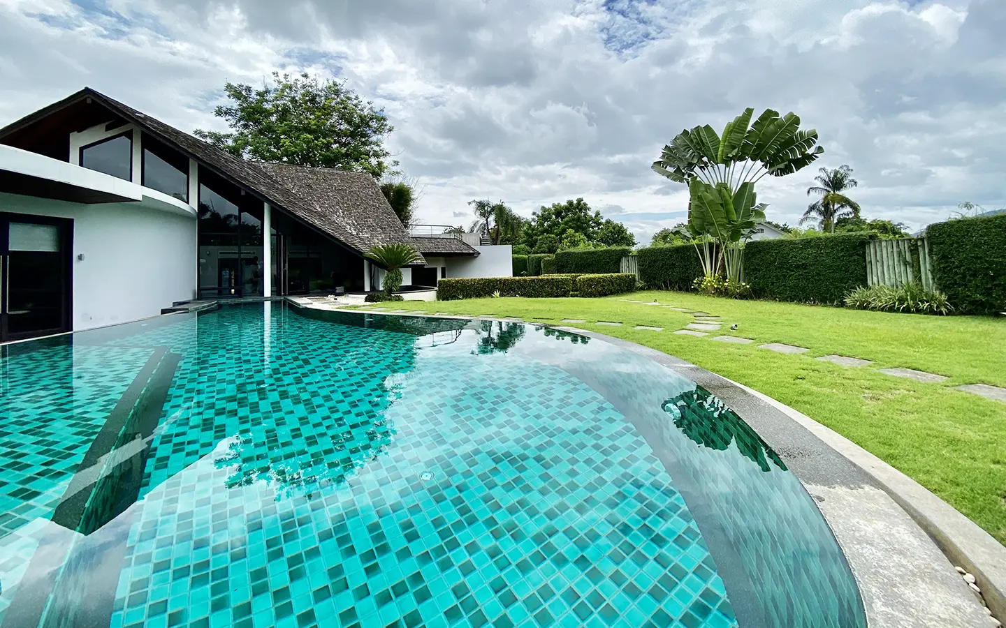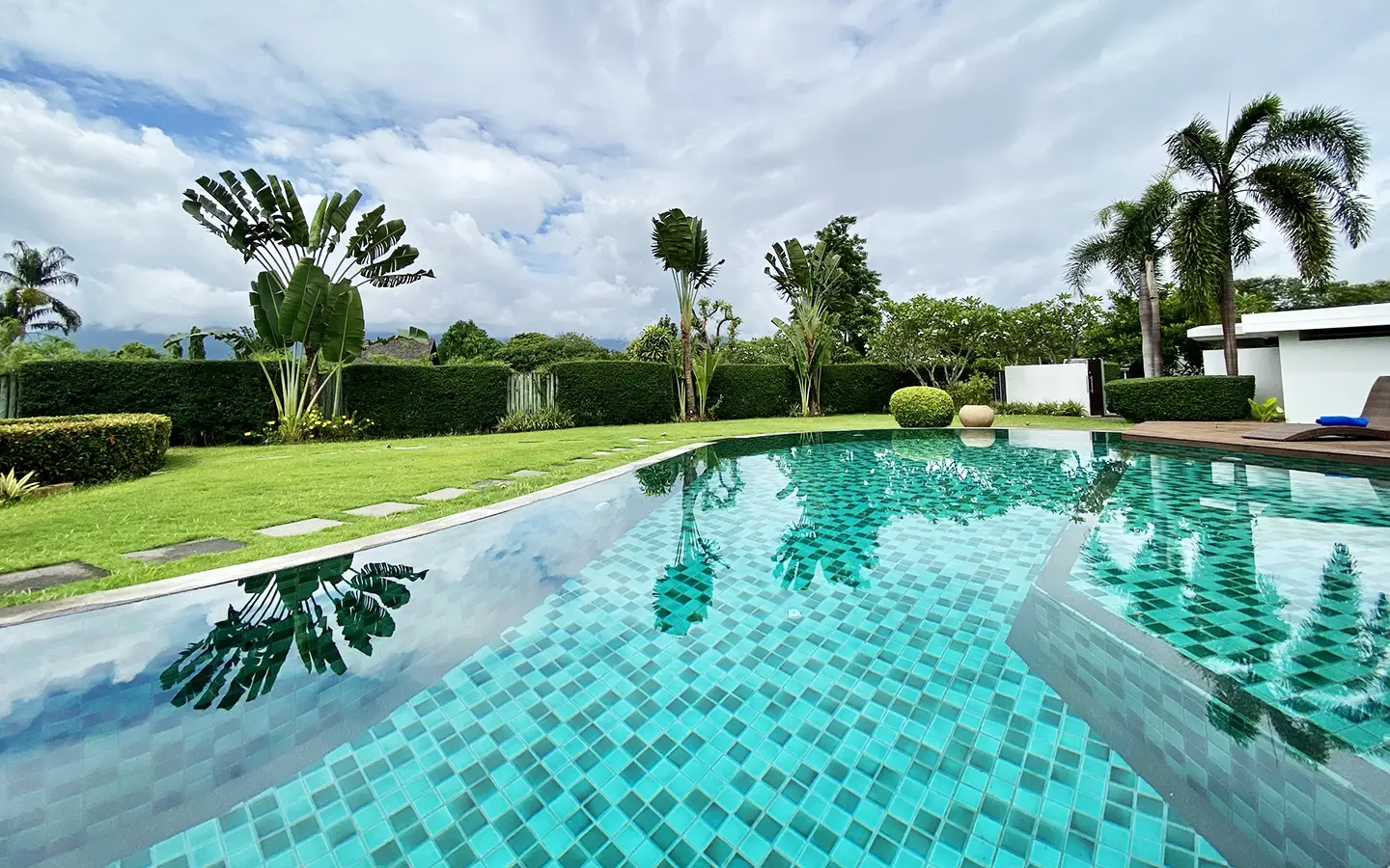 Luxury modern 3 bedrooms pool villa for sale in an exclusive estate in Maerim area of Chiang Mai. Situated a stone's throw away from The Four Season Resort, this hidden gem estate sits on a sloping hill and is just half an hour drive north of Chiang Mai town centre. With walking distance to restaurants, markets, hospitals whilst there are numerous cafes and tourist attractions nearby. About 15 minutes drive to Prem International School, less than 5 minutes from Mae Rim Plaza and 10 mins from the Green Valley Golf Course.