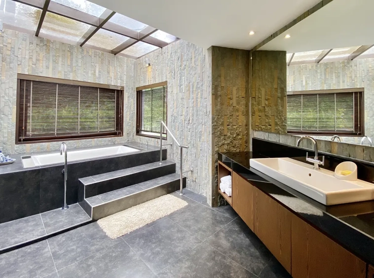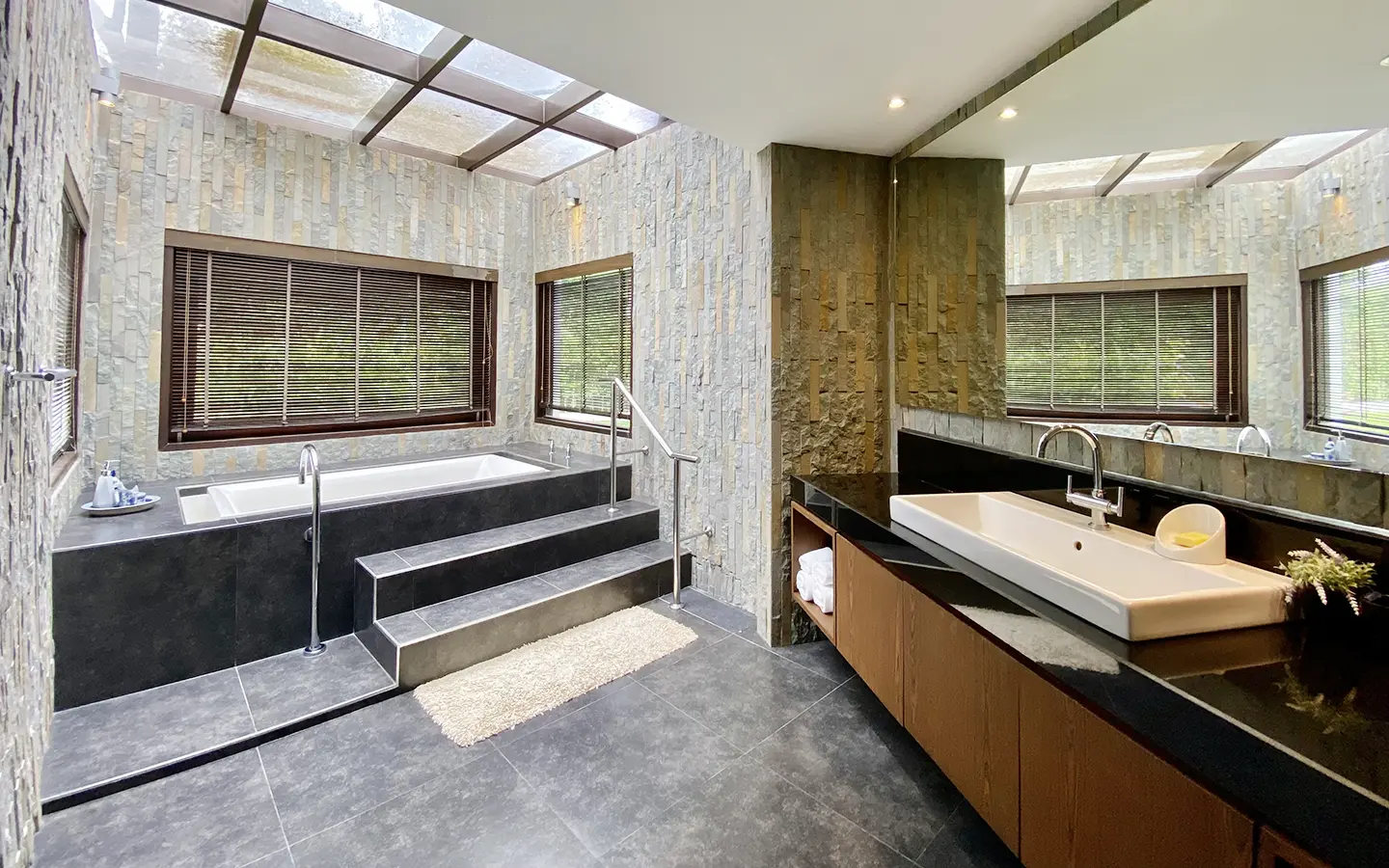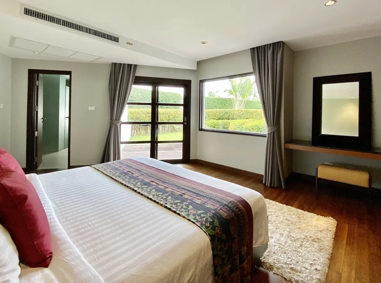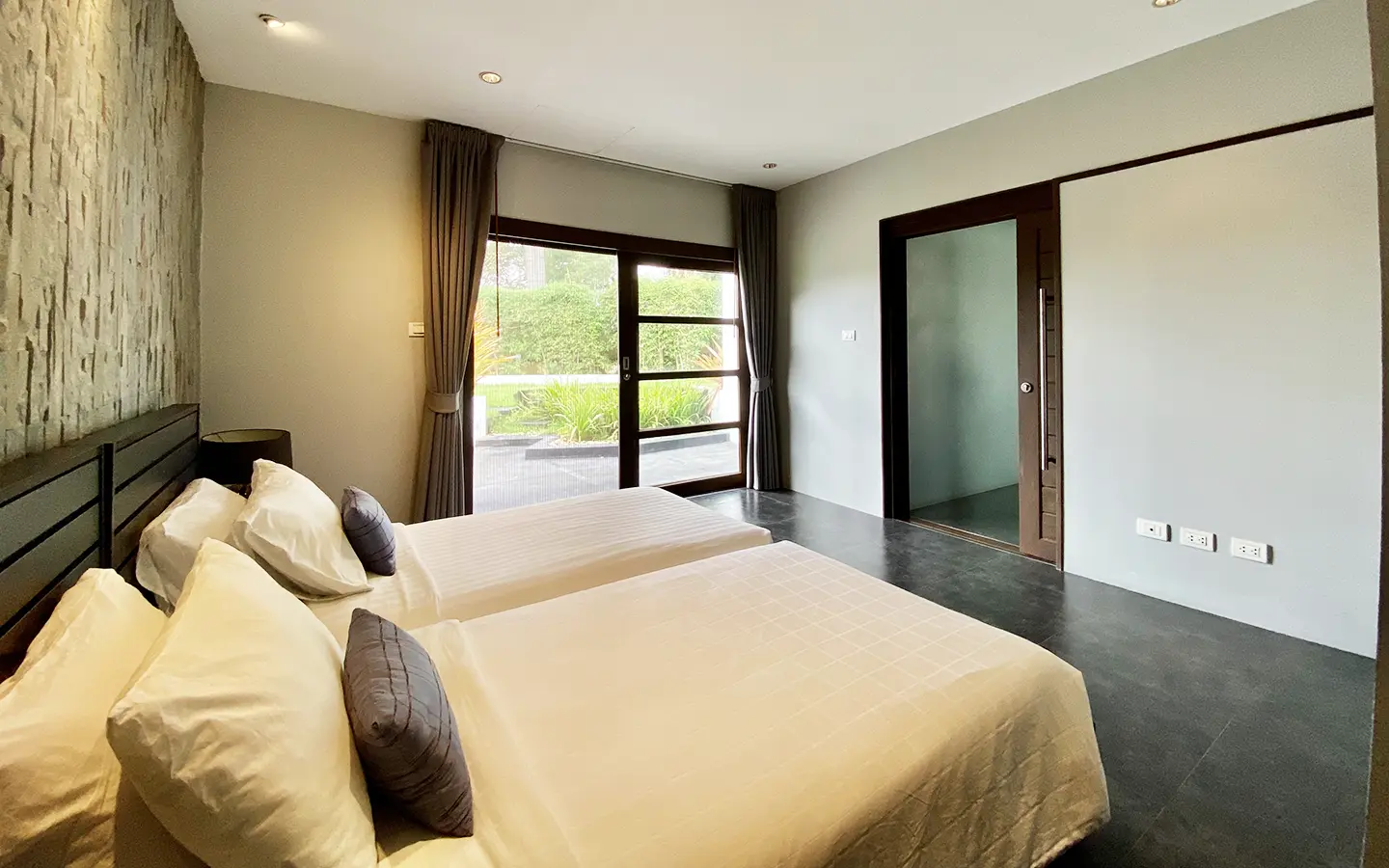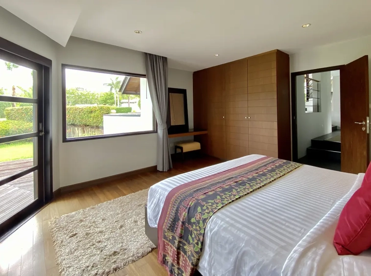 There are 3 bedrooms, all ensuite with the master bedroom having a sitting area and a jacuzzi and all with built-in wardrobes. One of the bedrooms also features an outdoor shower. All rooms are furnished with high-quality furniture and tastefully decorated. Very luxurious, very discreet. Best value for money at the moment.