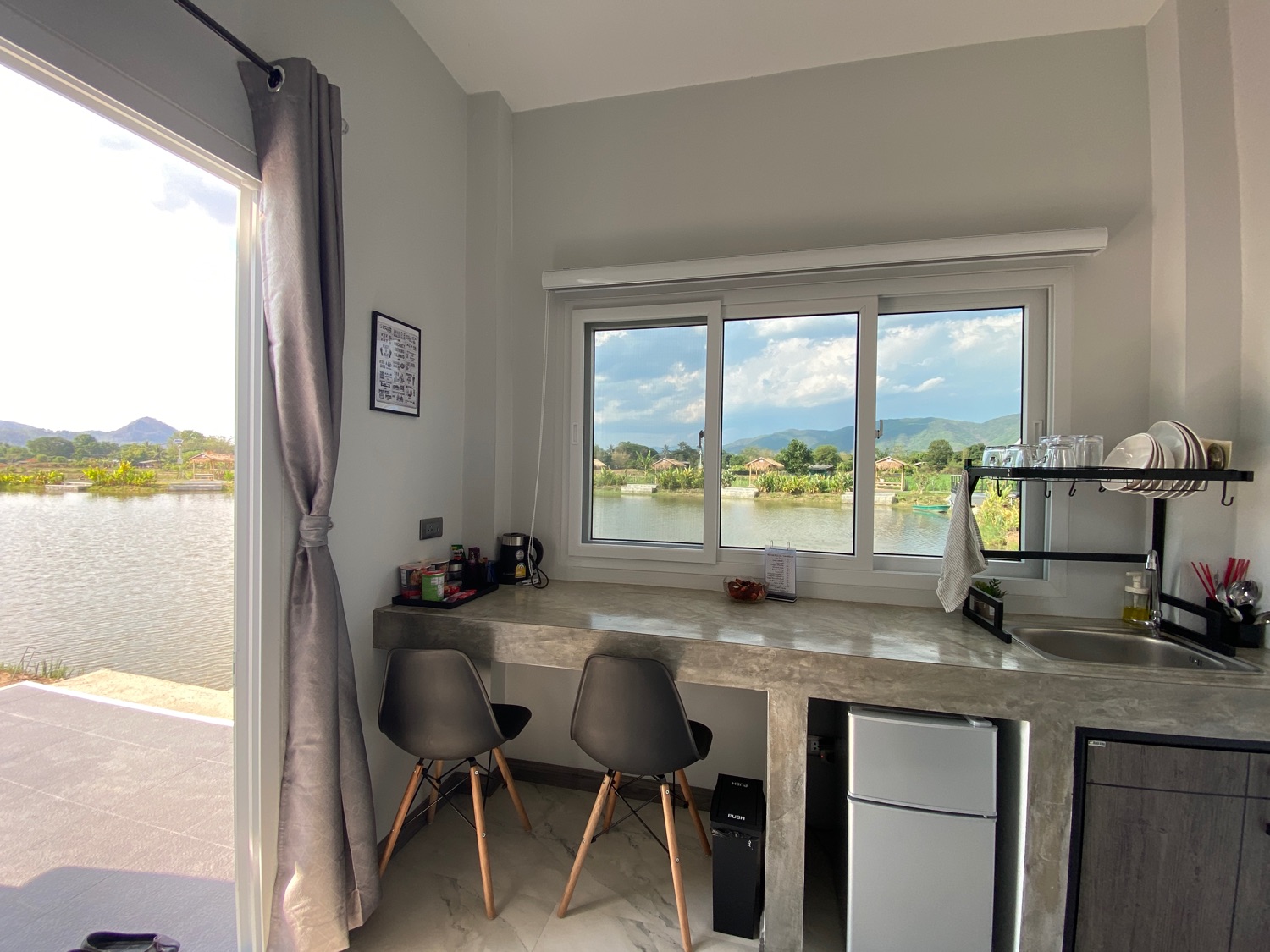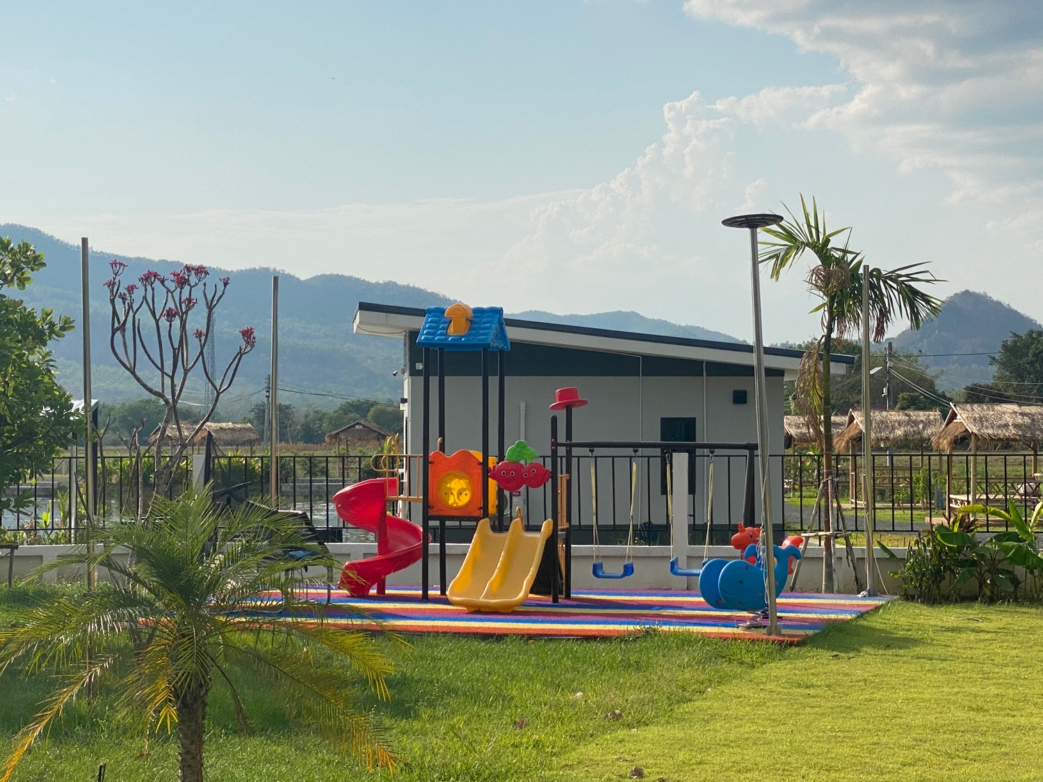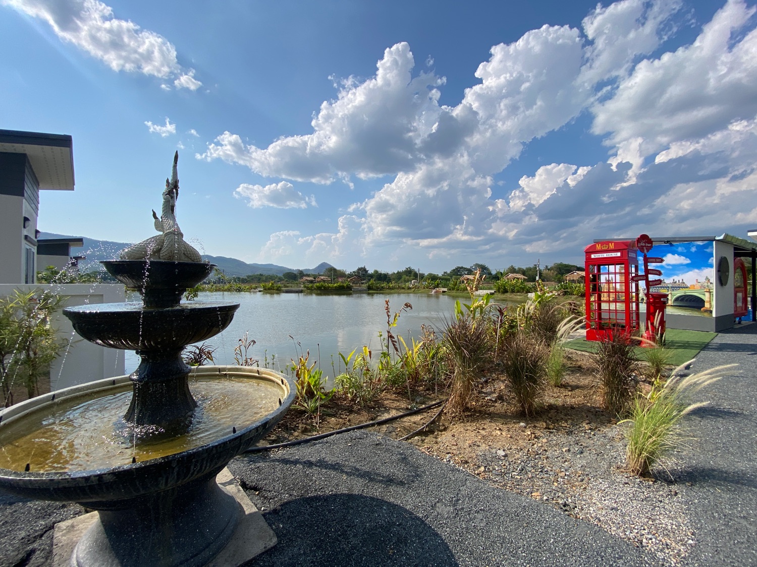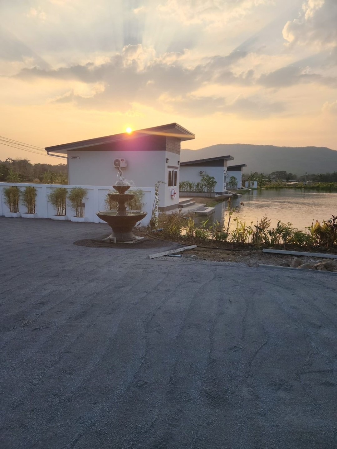 The property sits on over 5 rais of land with neatly paved roads, a playground and a large lake filled with fish. There is a main house with 4 bedrooms, 3 bathrooms, a private pool, a workshop and a large terrace with a big koi glass tank. There is also a separate one-bedroom guesthouse in a more private setting. Around the lake there are 3 bungalows, all have one bedroom and are fully equipped with a small pantry with a fridge, a TV, a living room and an ensuite bathroom. The bedroom has direct access to the terrace facing the lake and all have stunning views of the lake and mountains. There is also a small convenience store with a terrace on the property. There is solar power, well water as well as public water on the land. Really must be seen to appreciate the views and the ambience.