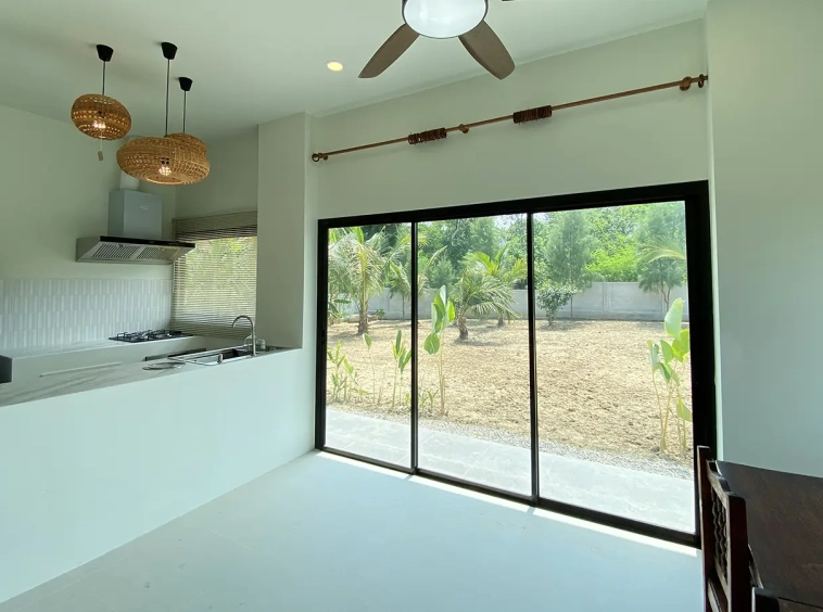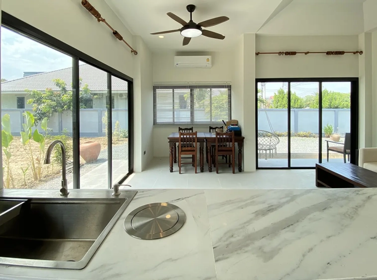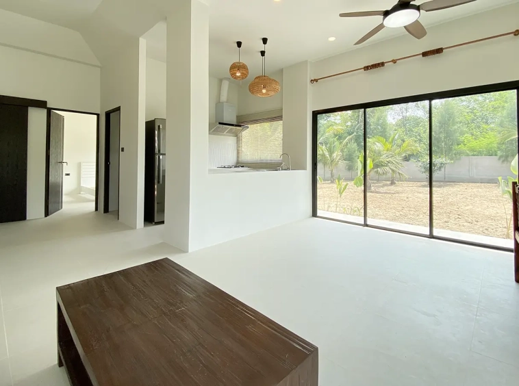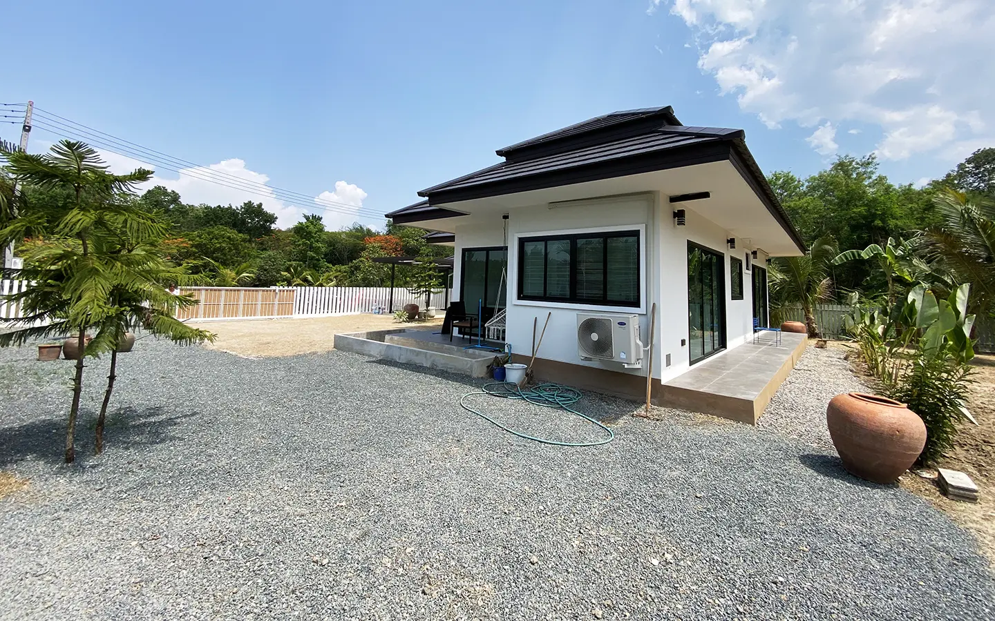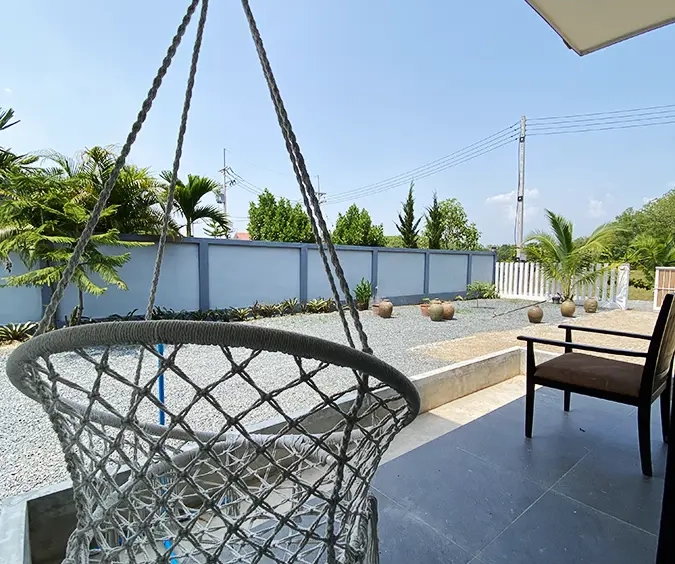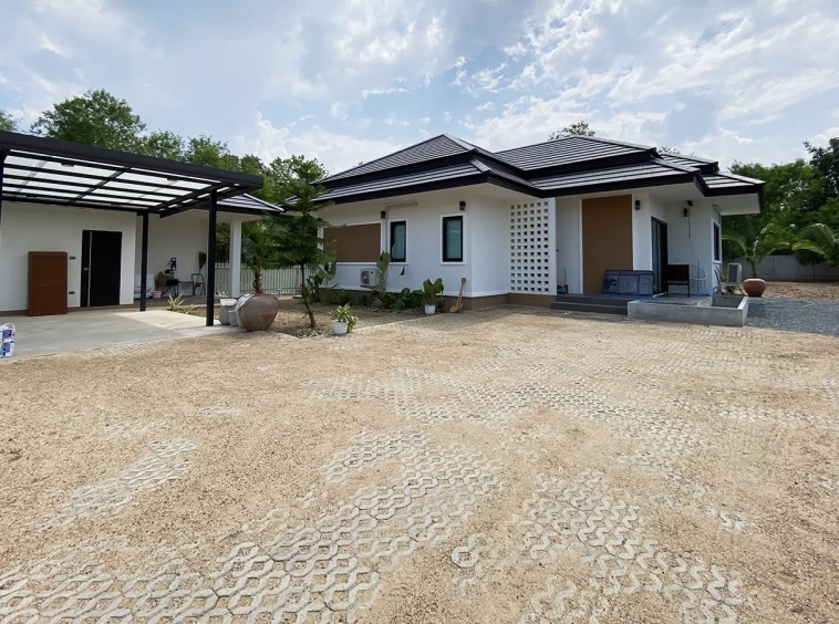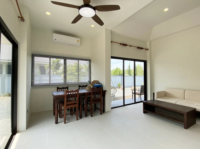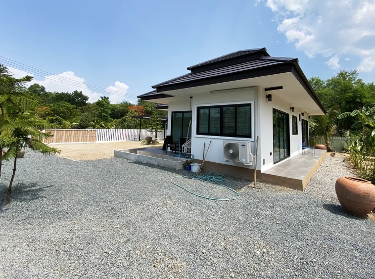 Brand new 2 bedroom modern one storey house with large garden for rent fully furnished in Maerim area of Chiang Mai. Situated on the quiet countryside just a few minutes drive from the main road near the X-Centerm the location is easy drive for Maerim Plaza, about 10 minute's drive to Makro and the upcoming Kad Farang. About 15 minutes drive to Prem International School and 25 minutes go into Chiang Mai town.