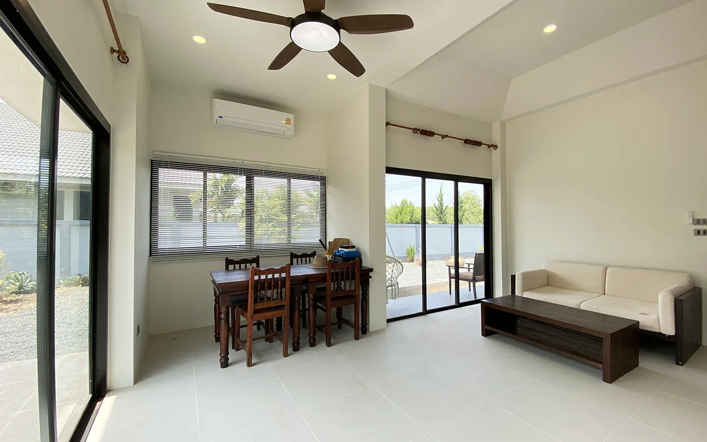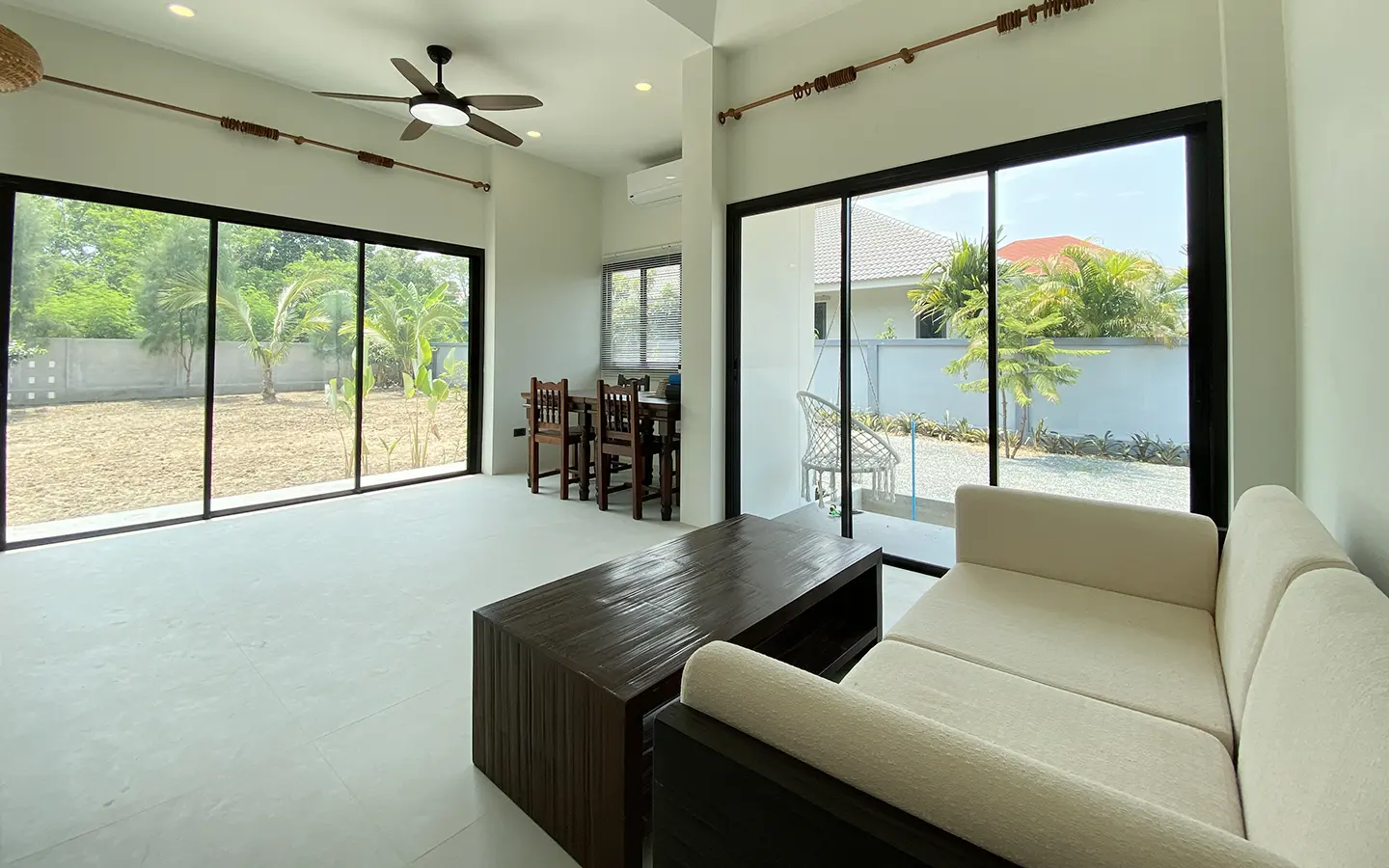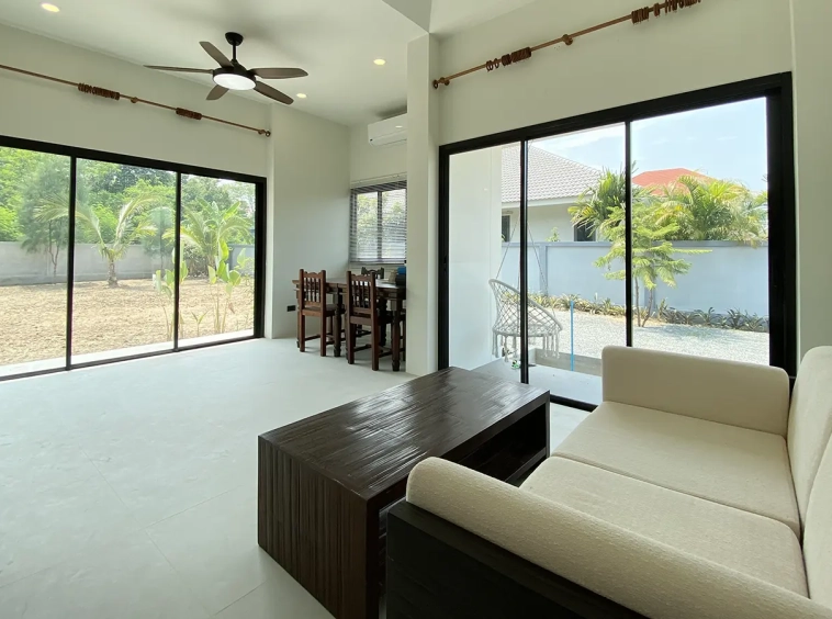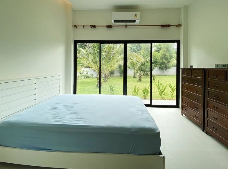 The house is neatly decorated and furnished with good-quality furniture pieces. 3 brand new air conditioning and water heater in both bathrooms. It is perfect for countryside lovers who enjoy modern comfort with big outdoor spaces. Rent inclusive of gardeners.
