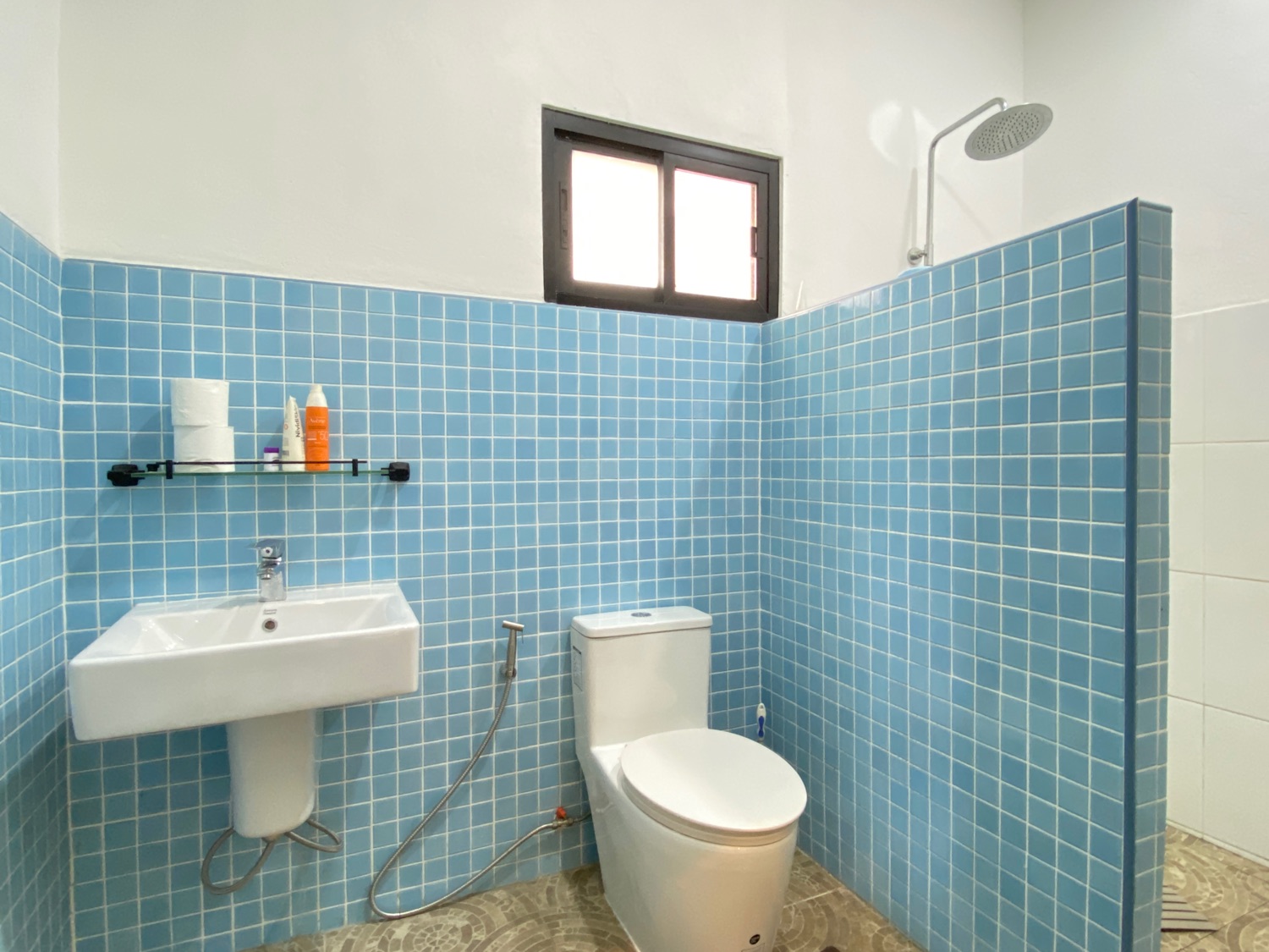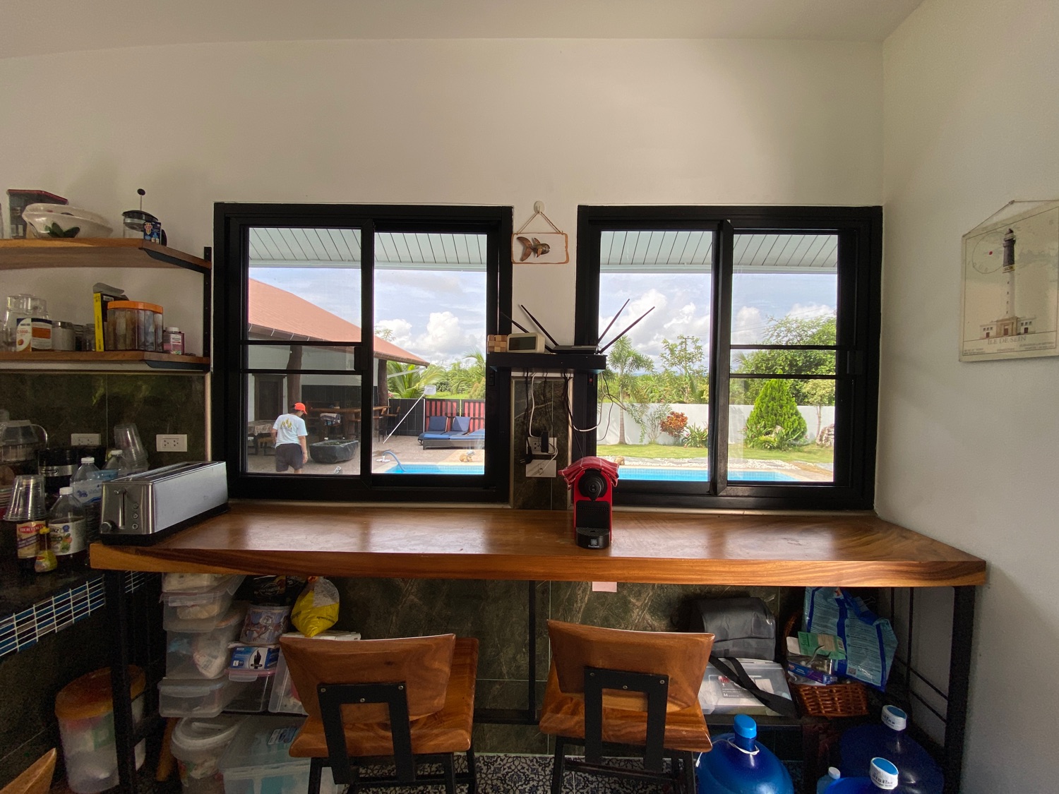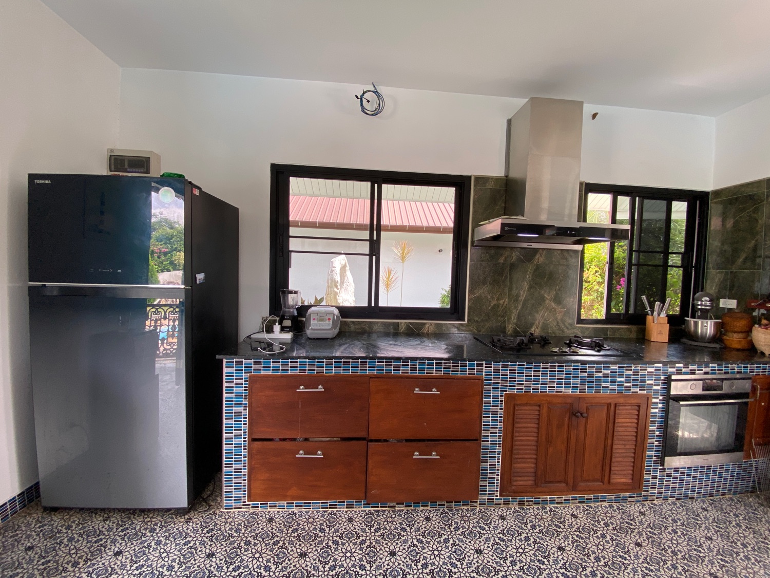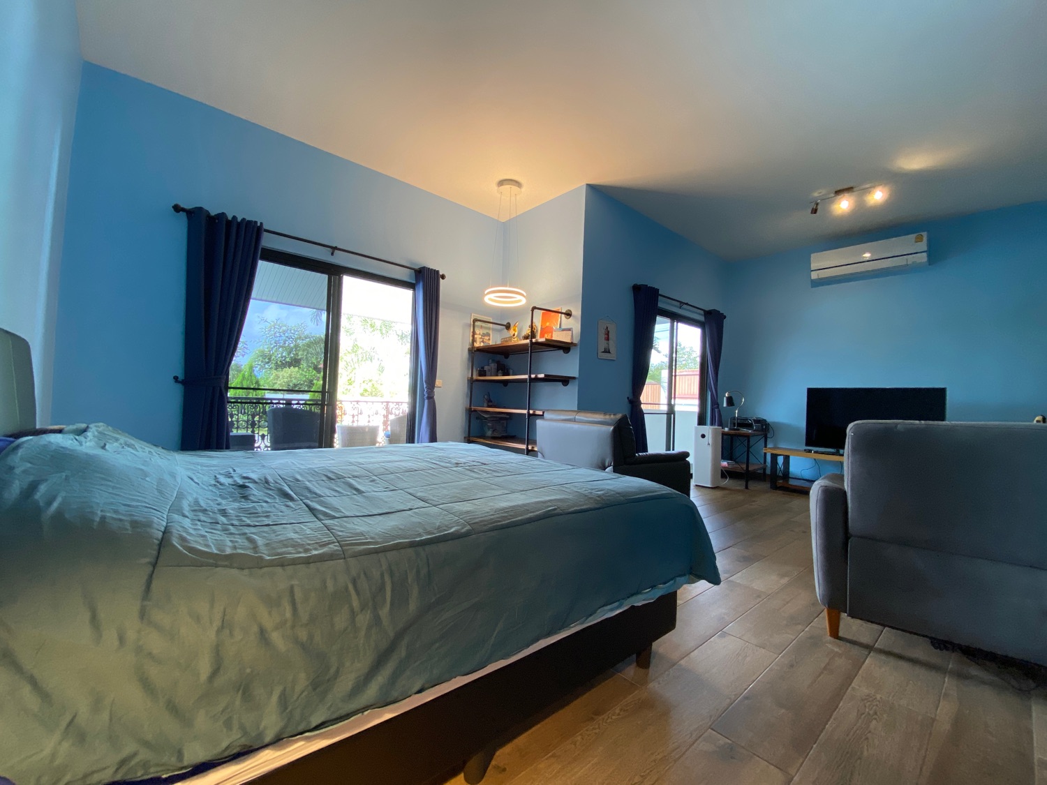 The over 5 rais property has road access and is situated in the countryside surrounded by orchards and rice paddy. The covered parking is by the entrance, then walking through the orchard towards the house there is a fish and lotus pond and then wheelchair access to the first building. The first bedroom is ensuite and has a sitting area and a spacious terrace. Next is a building containing a fitted Western kitchen with a built-in oven, breakfast bar and BBQ area by the pool. Then another building with a second bedroom which is also ensuite and comes with a terrace to sit and enjoy the mountain, pool and rice paddy views. The last building contains an ensuite third bedroom, a guest bathroom, a study, and a storage room which easily can be turned into a fourth bedroom.