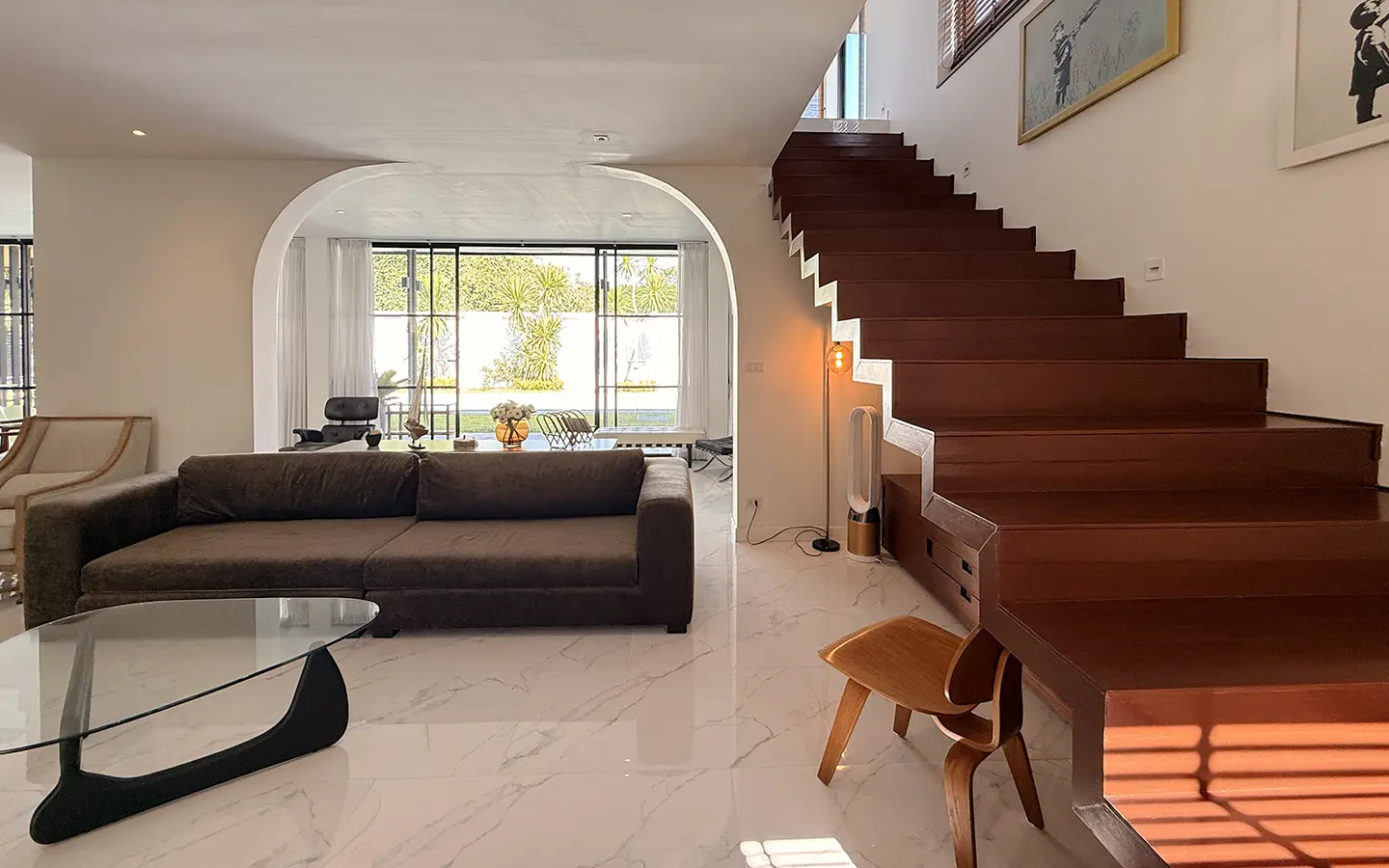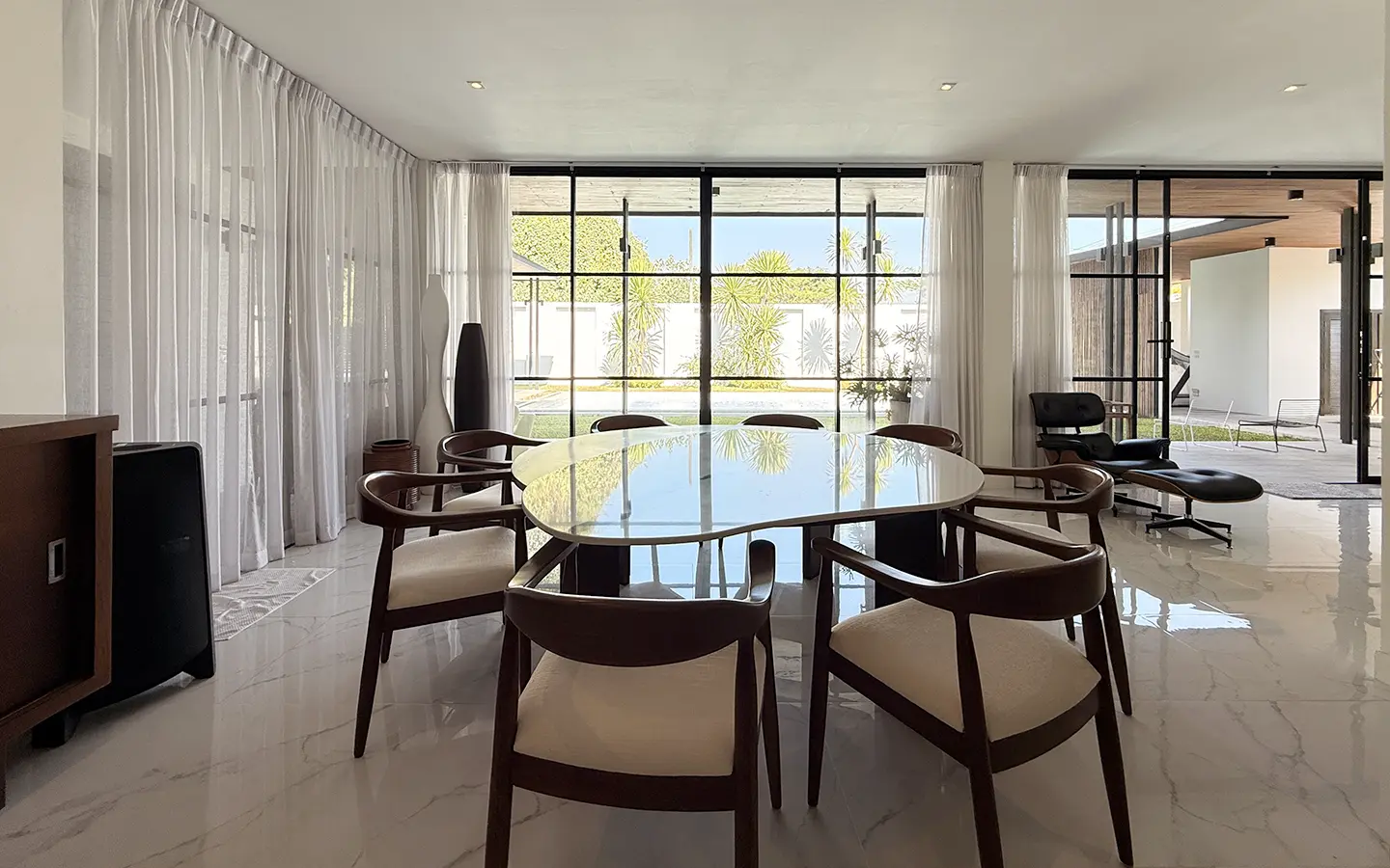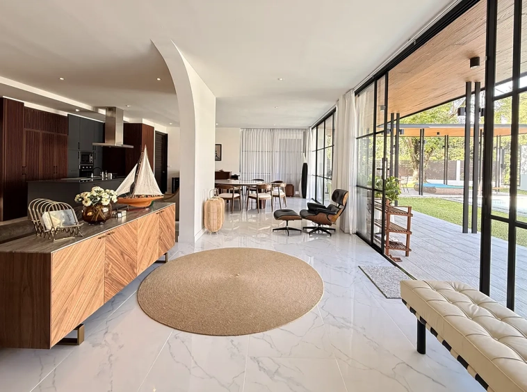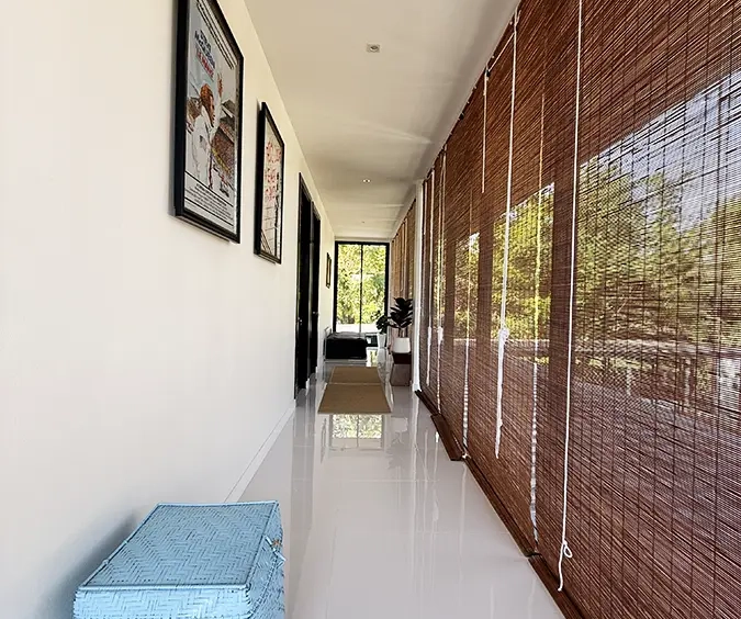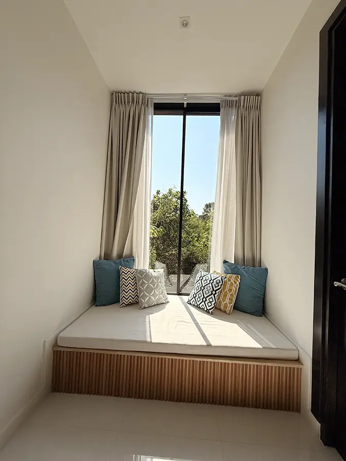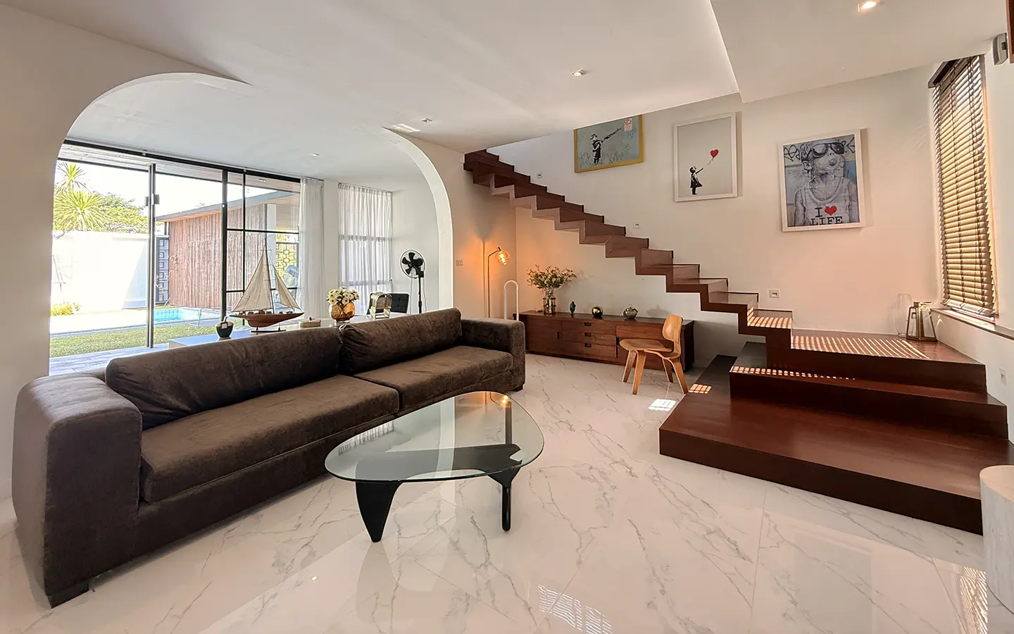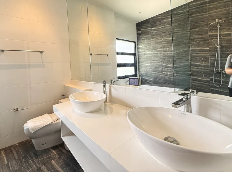 The house is designed with high ceilings and extensive use of glass walls to maximize natural light and provide views of the surrounding greenery. This design helps keep the house cool and comfortable. All furniture is of high quality with stylish and modern design.