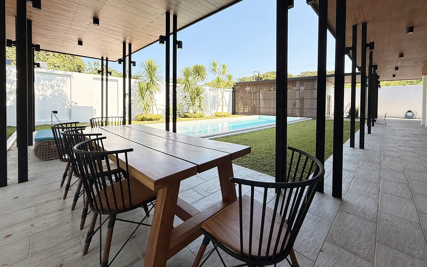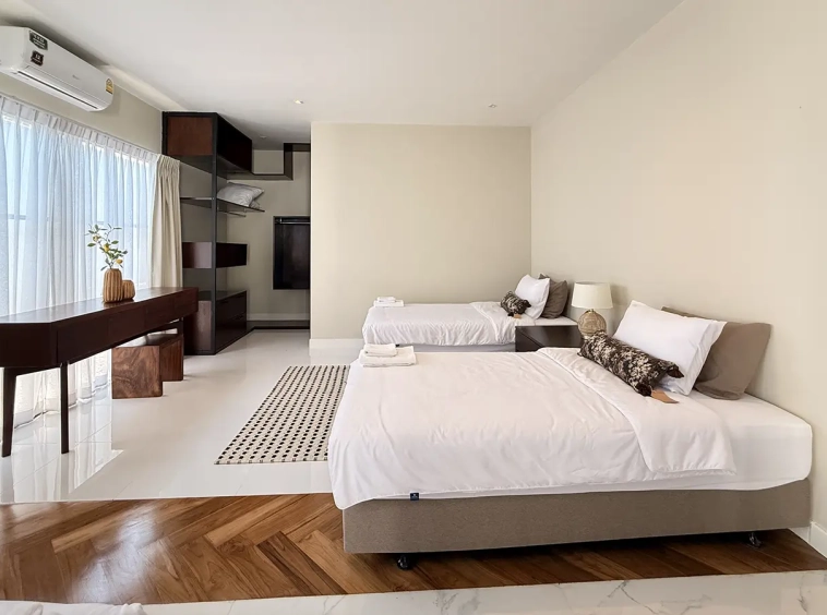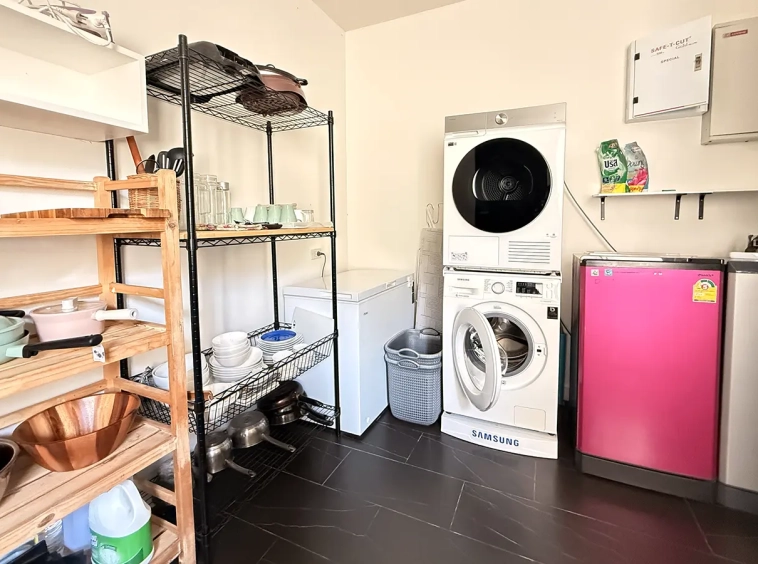 Outside the main house, there is an additional guest bedroom with an en-suite bathroom, a separate Thai kitchen, and a designated laundry area.