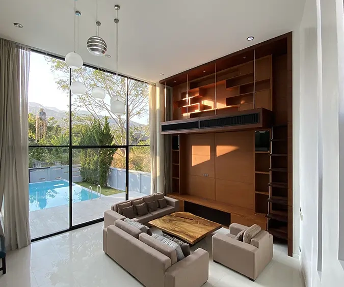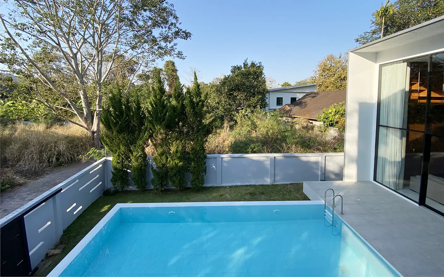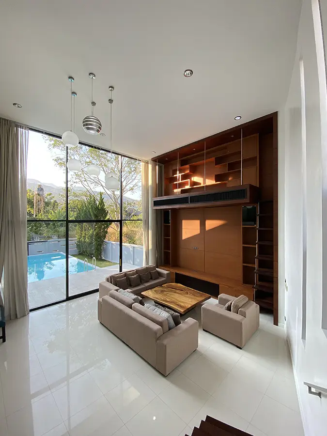 Ultra-modern villas for rent fully furnished in a unique residential project. Located off the Canal Road at the foot of Doi Suthep, offering a serene setting yet a stone throw away from Nimmanhemin area, Maya Mall, universities and a few minutes drive to the airport.