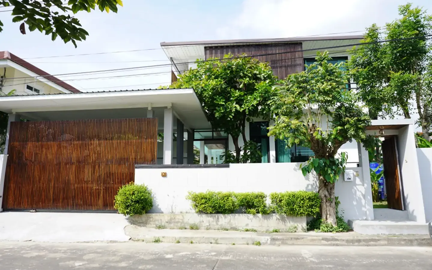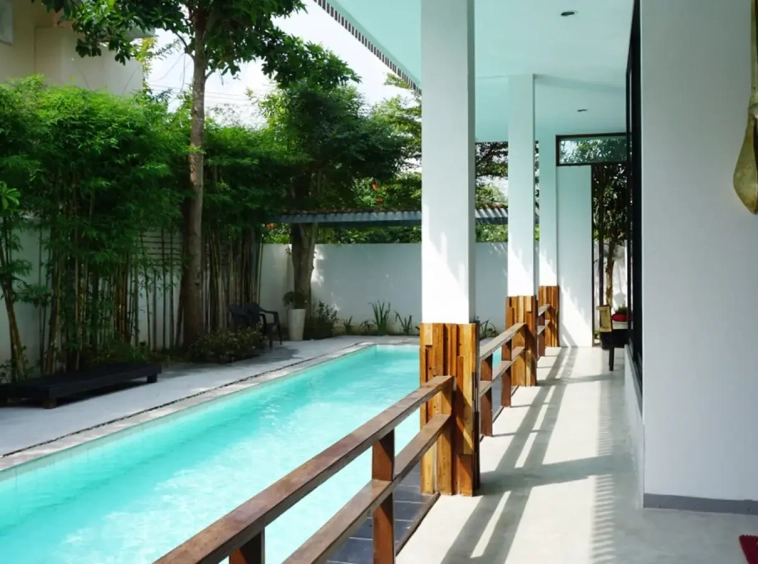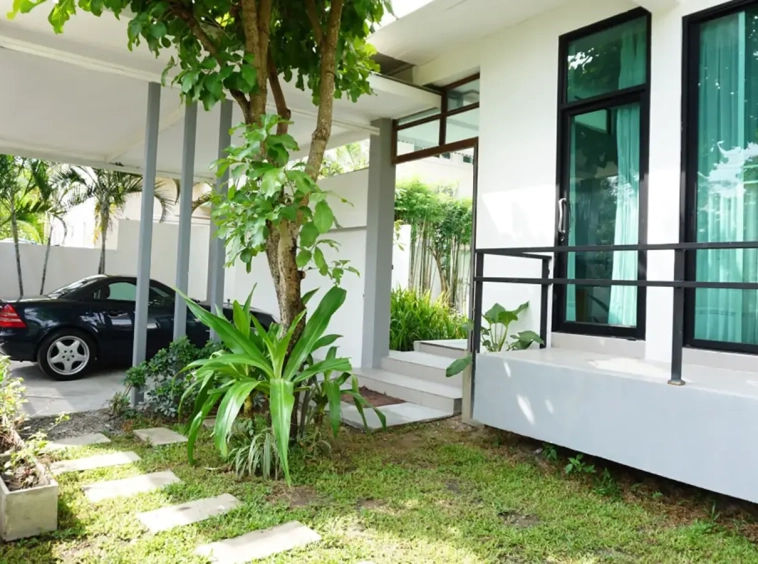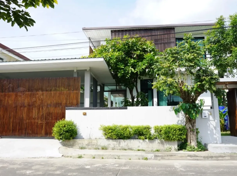 A fully furnished modern design house for rent or sale located at World Club Land Project in the Hang Dong area, It has 3 bedrooms and 4 bathrooms and it also has a private swimming pool. It takes less than a 15-minute drive from the Chiang Mai International Airport, 5 minutes to Makro and less than 10 minutes to Kad Farang and Rimping Supermarket.