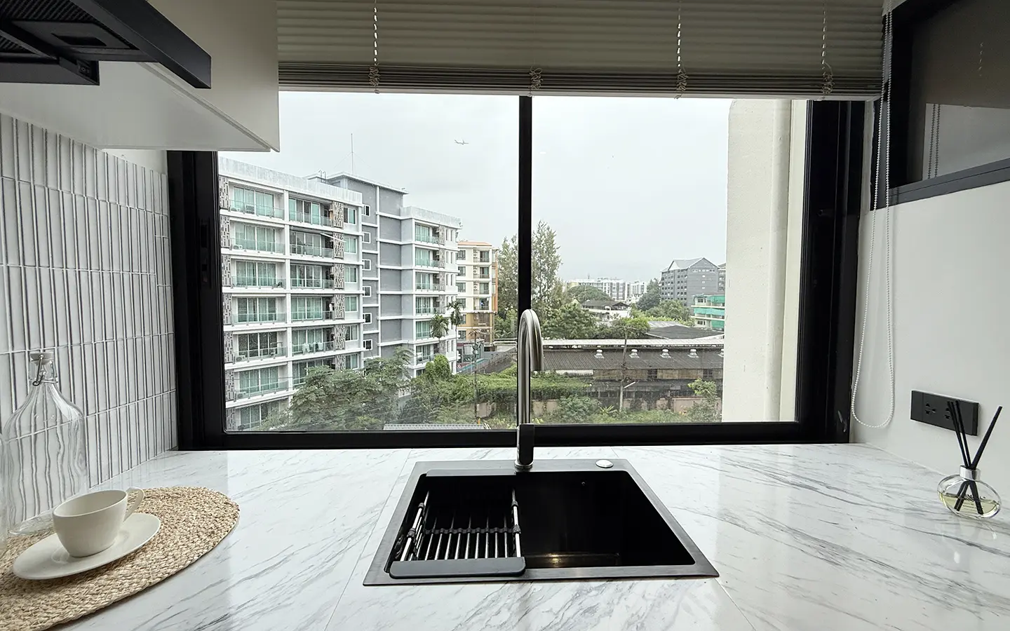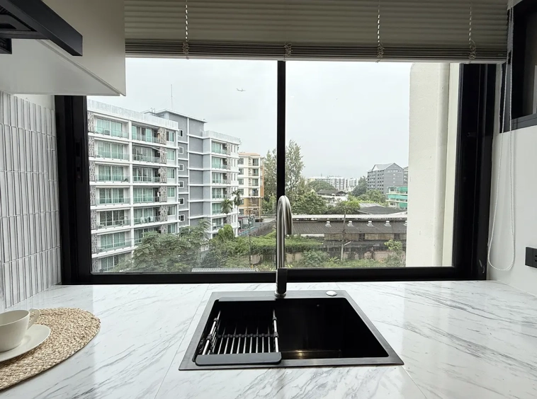 This 5th-floor unit offers a beautiful mountain view and a convenient location, just 8 minutes from Chiang Mai Airport and less than 10 minutes to Nimman Road, Maya Lifestyle Shopping Center, and a variety of shops and restaurants.