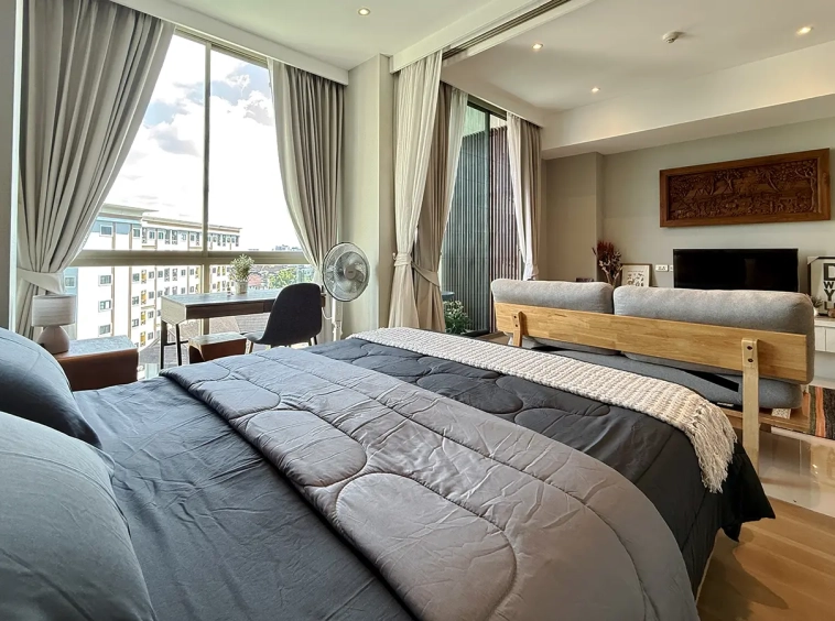 This unit is located in one of Chiang Mai’s most well-known developments. It is just a 5-minute drive from Maya Lifestyle Shopping Mall, less than 20 minutes from Chiang Mai International Airport, and only 9 minutes from both Singapore International School and Chiang Mai Ram Hospital.