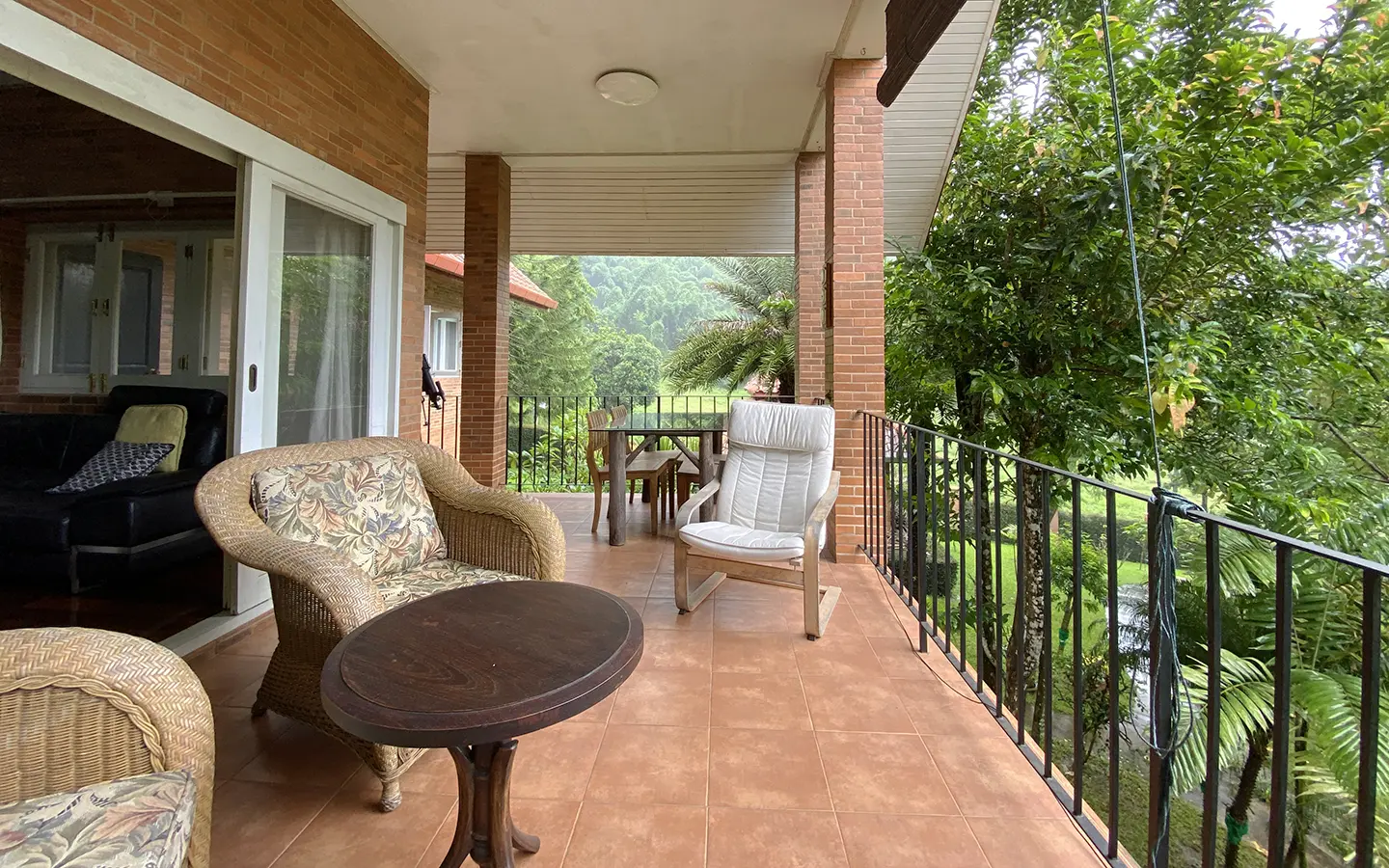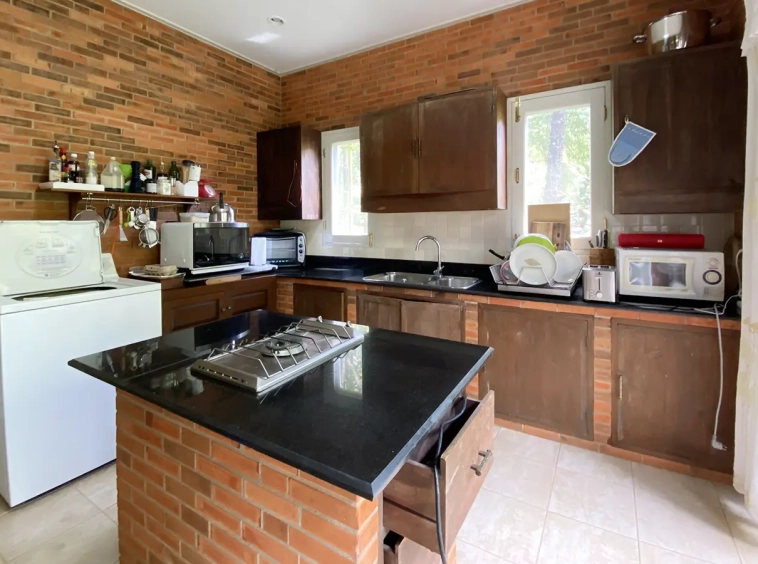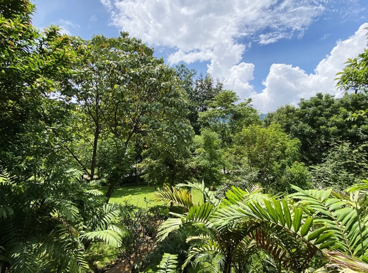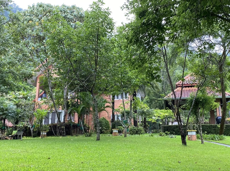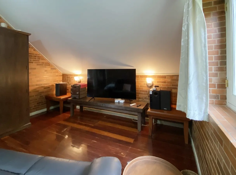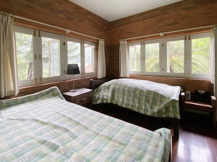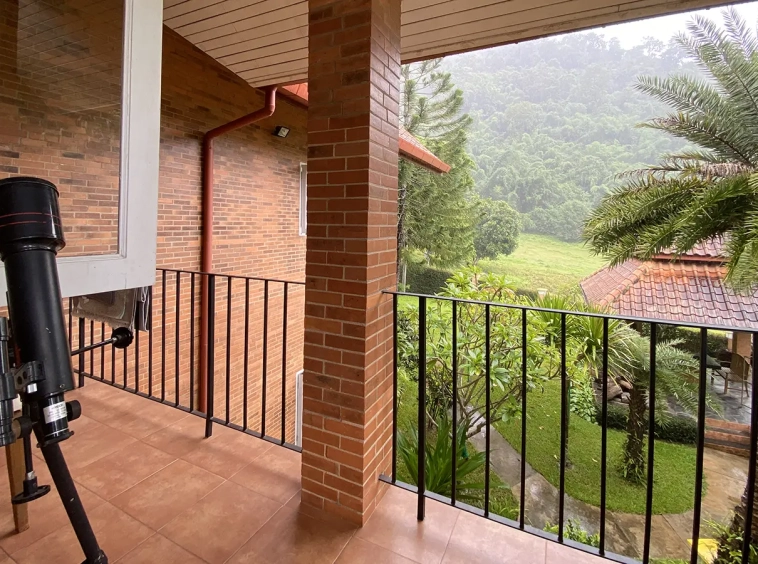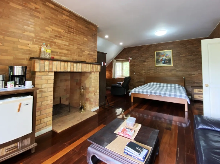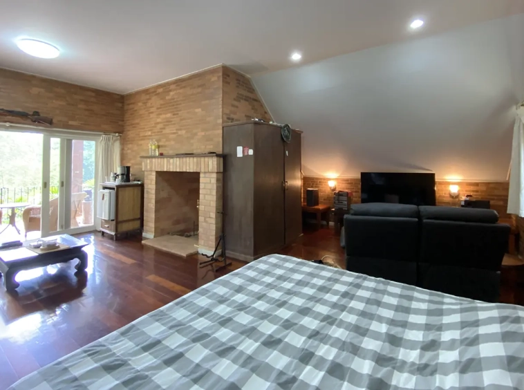 The house is of brick and has a cosy sitting room with a working fireplace. Spacious living and dining area separate from rustic style Western kitchen with food preparation island. There is a guest bathroom with a shower on this floor. Going up on the rare redwood staircase, the second floor contains a shared bathroom and a guest bedroom which has windows on 3 sides to really feel nature. There is access to a large terrace which is also connected to the master bedroom. The master bedroom is spacious with a sitting area, fireplace and tv area. The view here is spectacular with both the mountain and the garden. Great spot on the terrace for stargazing. There is a separate self-contained guesthouse with a bedroom, sitting room and kitchen. Gorgeous house in the mountain!