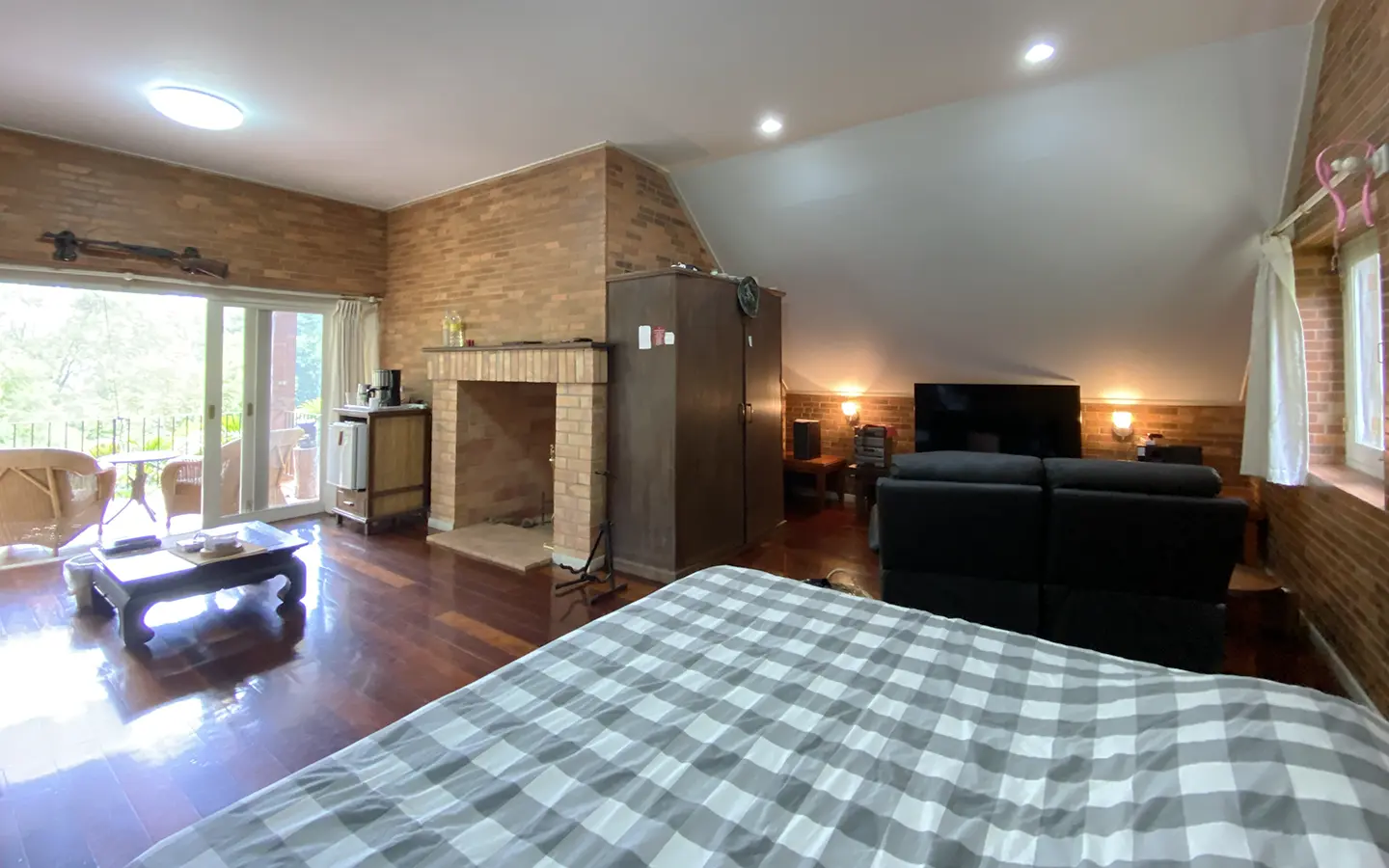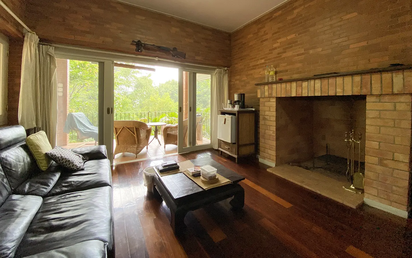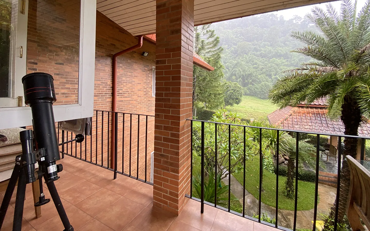 The house is of brick and has a cosy sitting room with a working fireplace. Spacious living and dining area separate from rustic style Western kitchen with food preparation island. There is a guest bathroom with a shower on this floor. Going up on the rare redwood staircase, the second floor contains a shared bathroom and a guest bedroom which has windows on 3 sides to really feel nature. There is access to a large terrace which is also connected to the master bedroom. The master bedroom is spacious with a sitting area, fireplace and tv area. The view here is spectacular with both the mountain and the garden. Great spot on the terrace for stargazing. There is a separate self-contained guesthouse with a bedroom, sitting room and kitchen. Gorgeous house in the mountain!