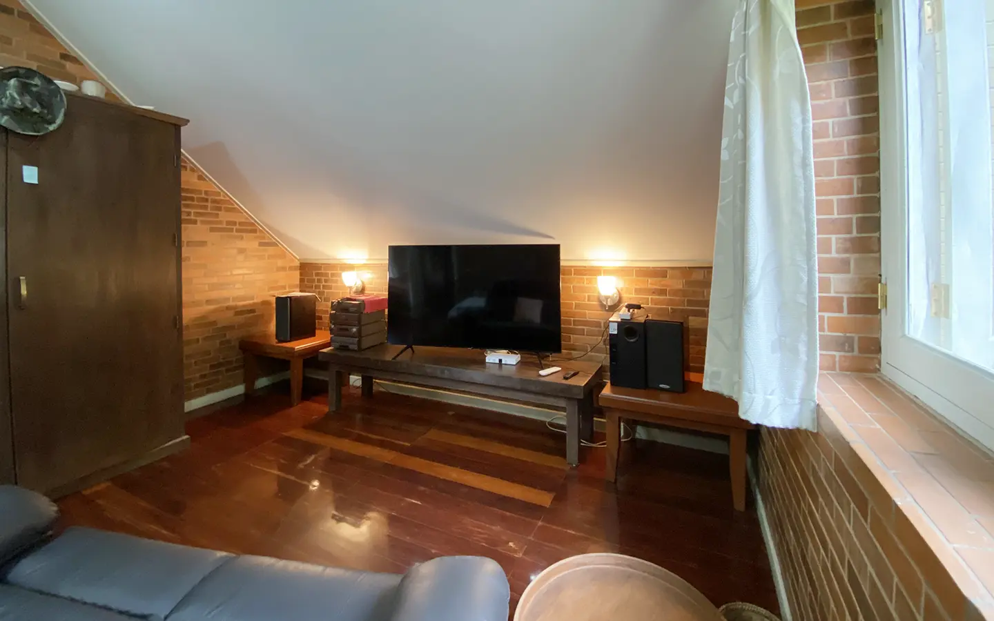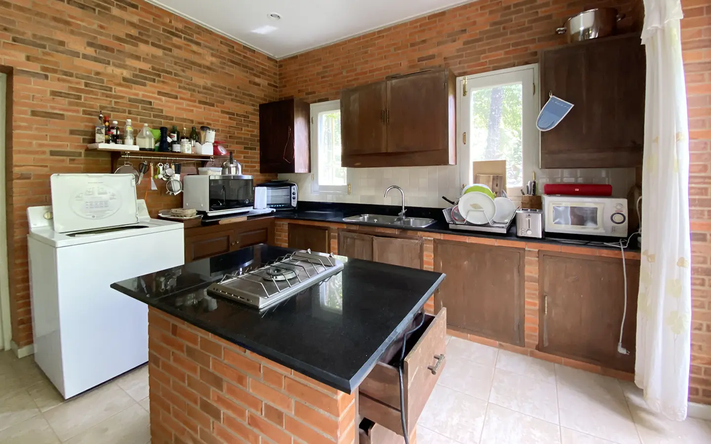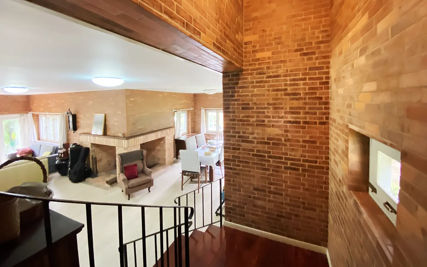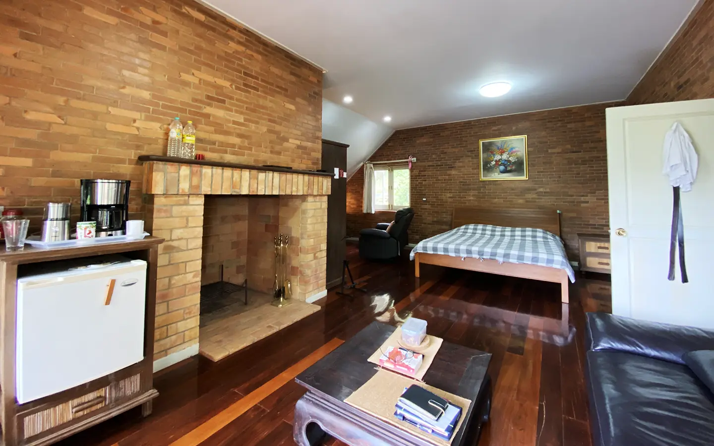 The house is of brick and has a cosy sitting room with a working fireplace. Spacious living and dining area separate from rustic style Western kitchen with food preparation island. There is a guest bathroom with a shower on this floor. Going up on the rare redwood staircase, the second floor contains a shared bathroom and a guest bedroom which has windows on 3 sides to really feel nature. There is access to a large terrace which is also connected to the master bedroom. The master bedroom is spacious with a sitting area, fireplace and tv area. The view here is spectacular with both the mountain and the garden. Great spot on the terrace for stargazing. There is a separate self-contained guesthouse with a bedroom, sitting room and kitchen. Gorgeous house in the mountain!