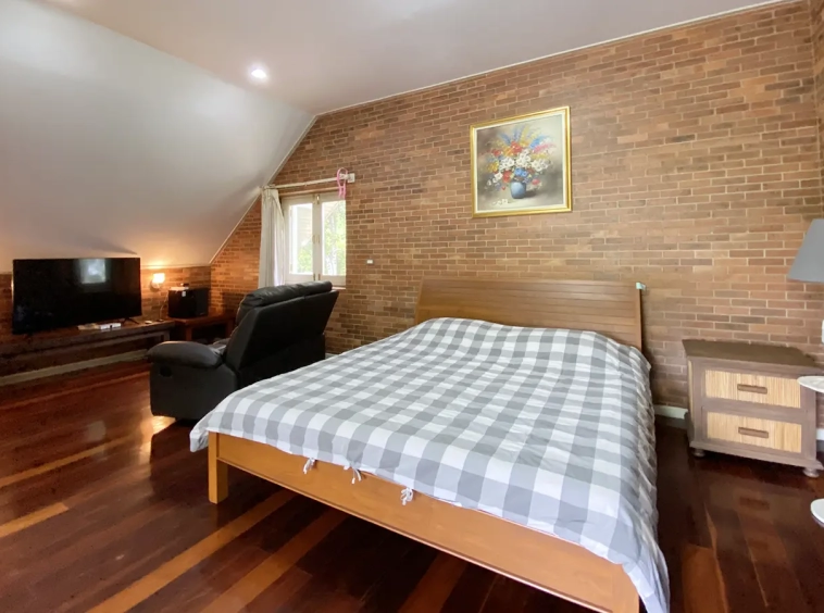 Charming English manor style 2 bedroom home for sale fully furnished in the Pongyang mountain area of Mae Rim town, Chiang Mai. Set on the hill amidst mountain forest, it is about a 25 minutes drive to Mae Rim Plaza and the town centre, 30 minutes drive from Prem Intl School and about 1-hour drive to the airport.