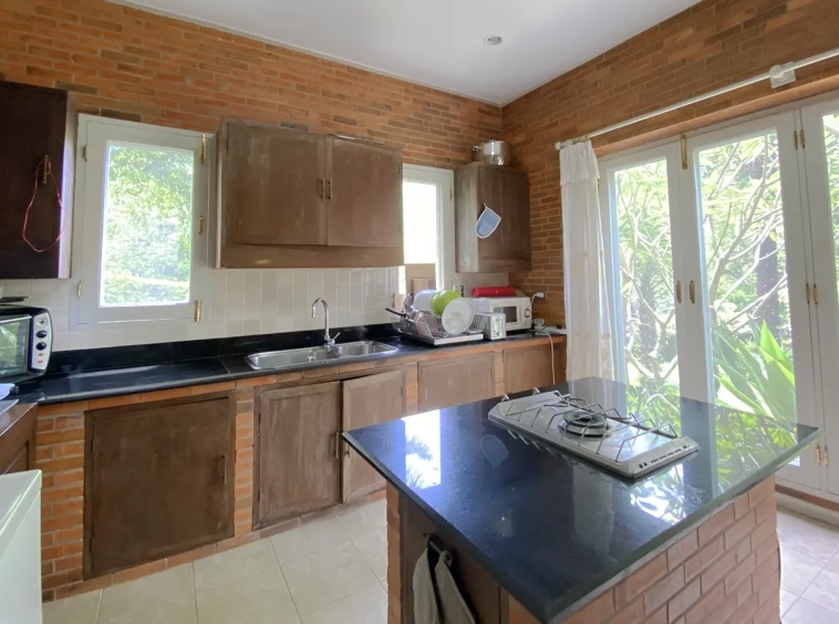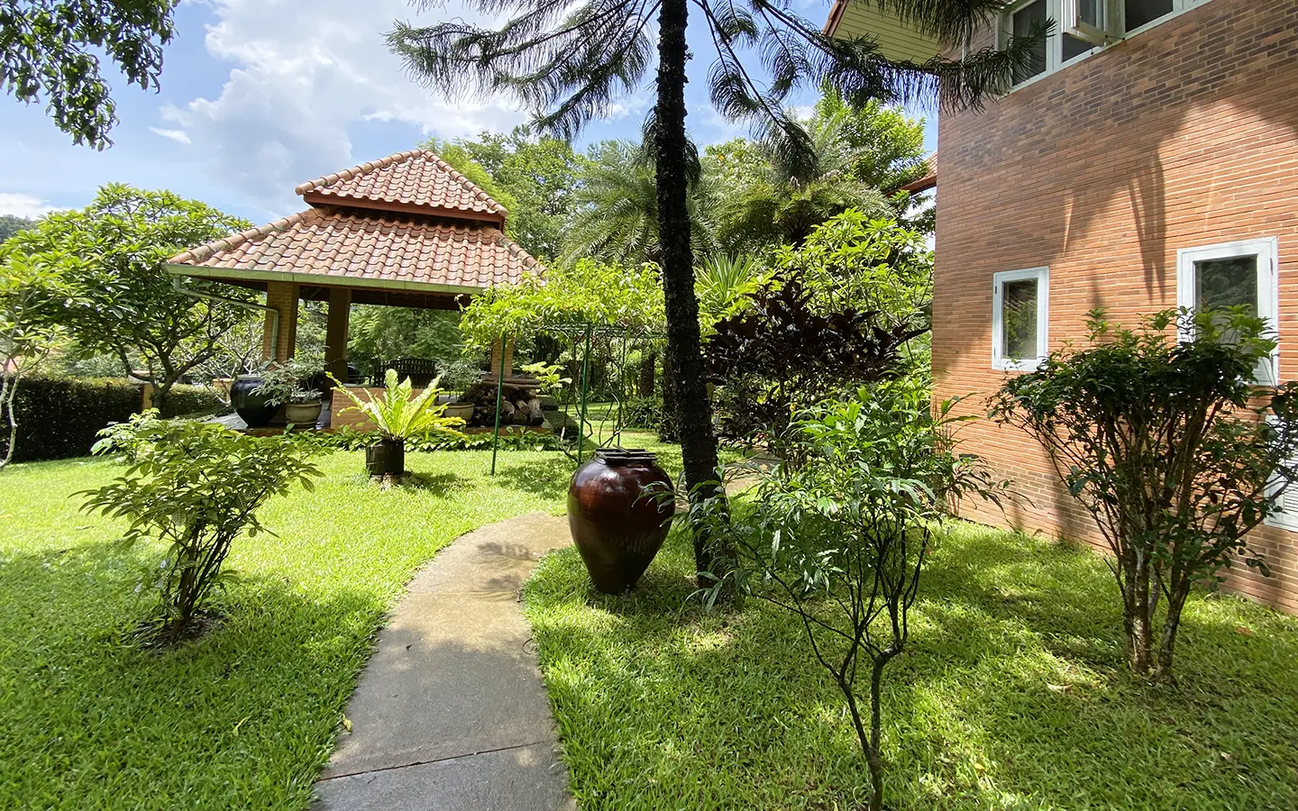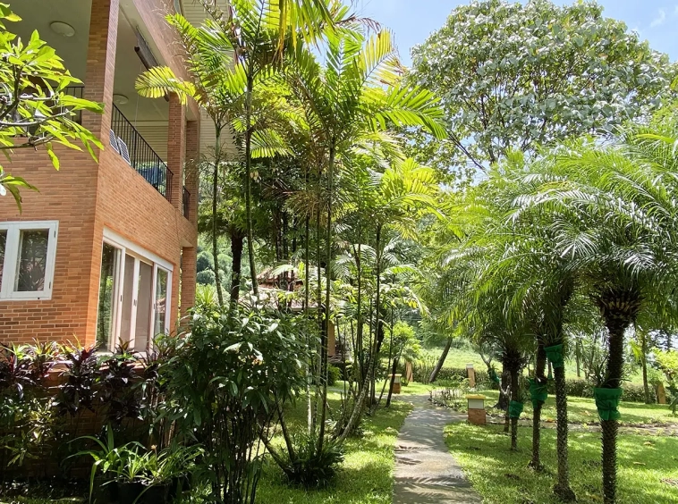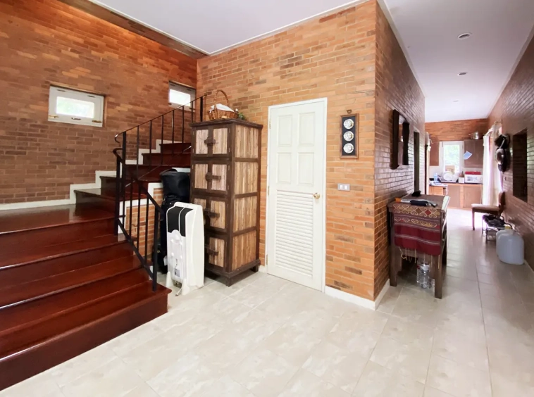 Surrounded by flower farms, the property is well maintained and occupies almost 2 rais of land. Offers true English countryside feel with well kept landscaped garden and a pagoda to sit and enjoy nature or entertain with BBQ area. There is a paved walkway around the property for exercising or walking meditation and a car parking space for 2 cars.