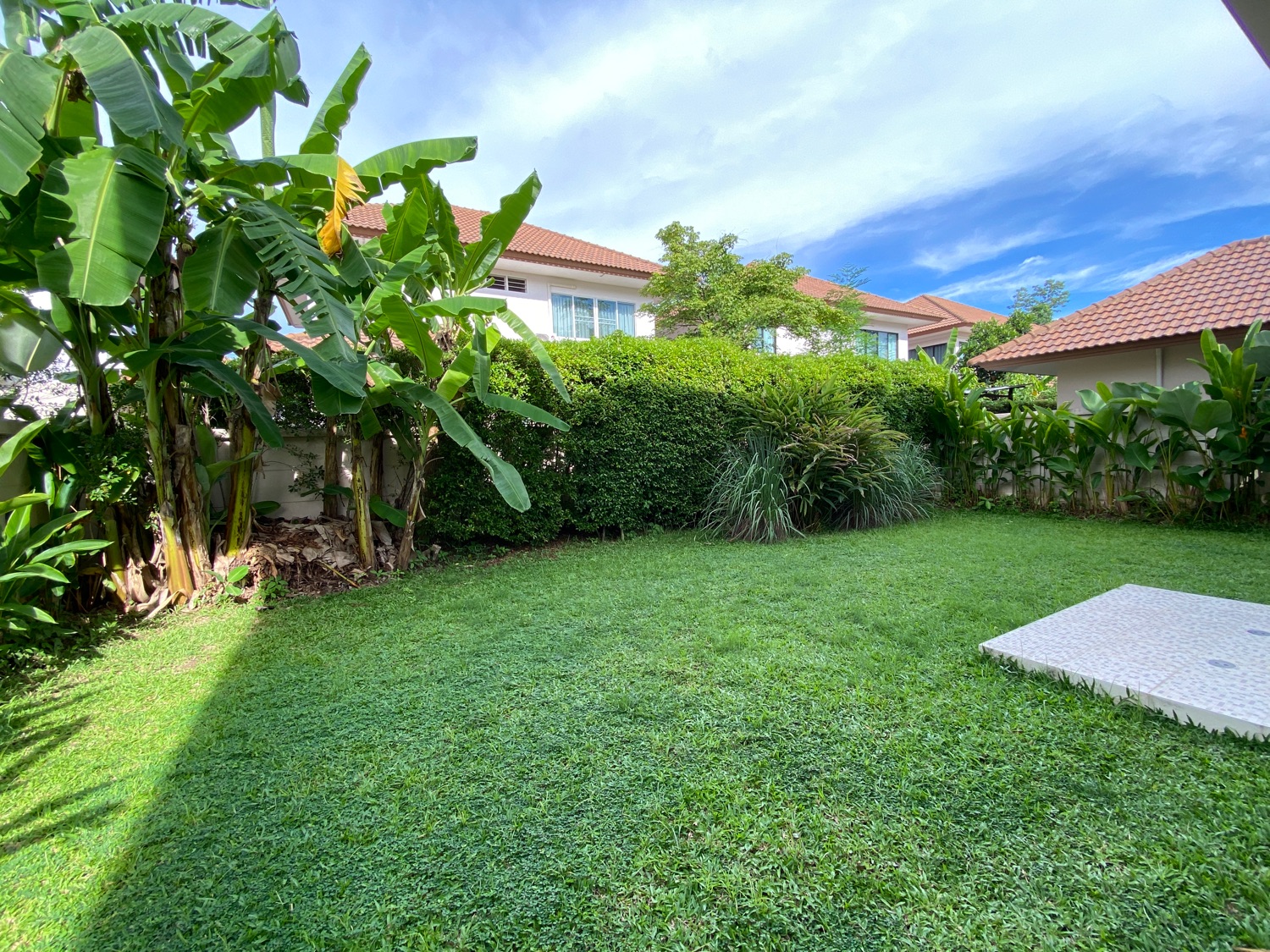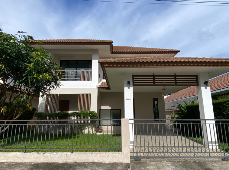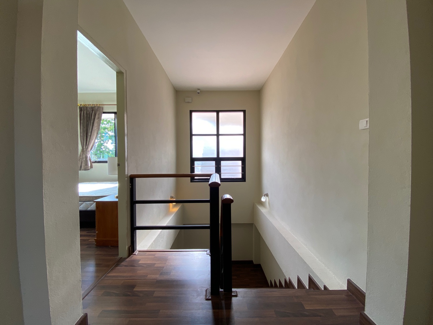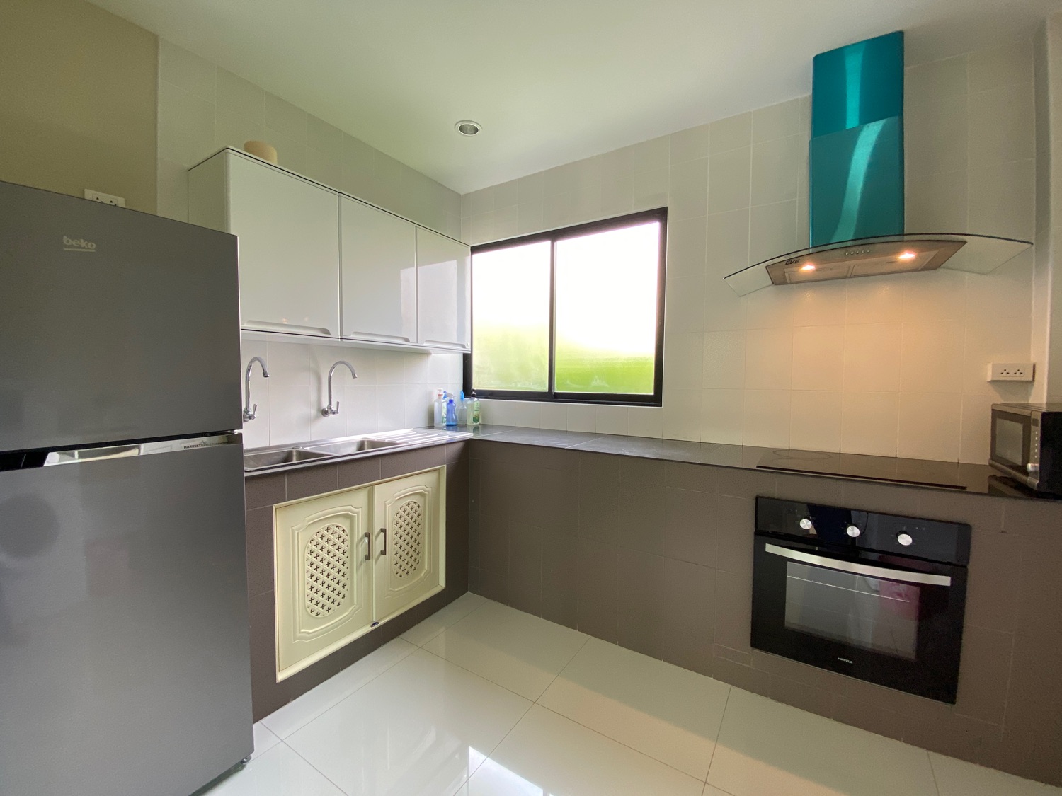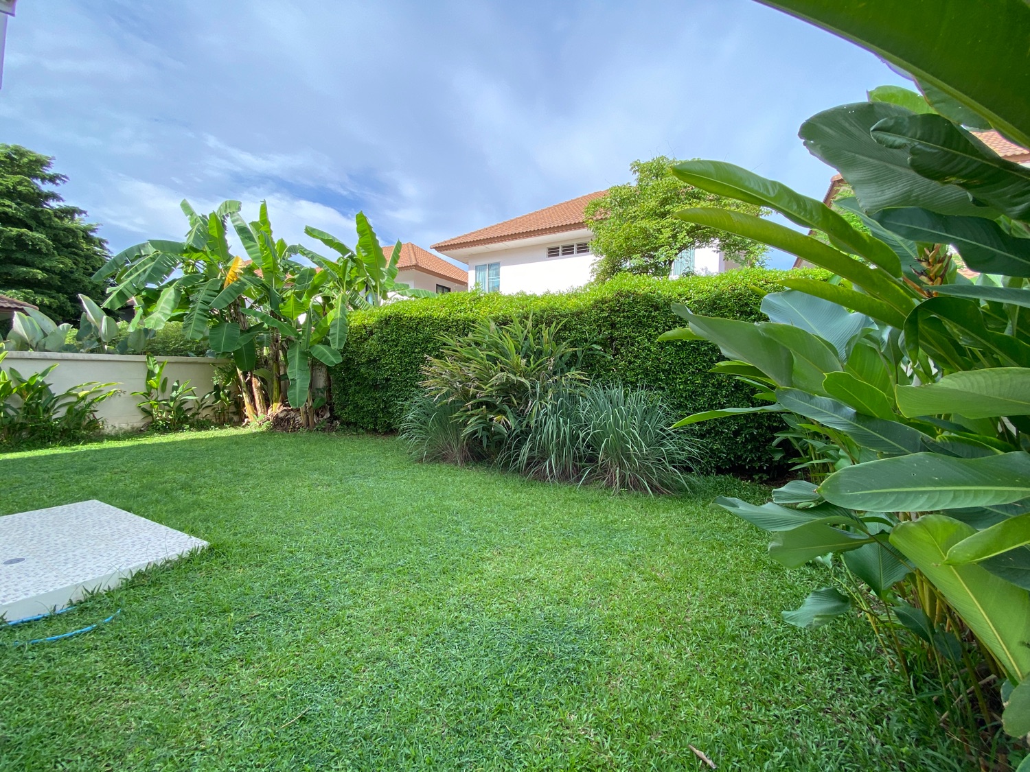 This house is located in a quiet gated project which only has 43 houses. It takes approximately 10 minutes from Central Festival Shopping Mall, Bangkok Hospital, Big C Extra Supermarket and Makro. There is a living, a guest bathroom, a dining, and a Western kitchen which has a brand-new oven, refrigerator, microwave and washing machine. There is access to the balcony and has seating area to enjoy an outdoor space. The second floor - there are 3 bedrooms, a master bedroom comes with an en-suite bathroom and another 2 bedrooms with a shared bathroom. This house is a good condition, rather new and good layout. It is airy and has a lot of natural light. The garden has a good space and is easy to take care of. There is one covered car park and there is a storage space outside by the car park. This project offers 24-hour security, a common swimming pool and a gym.