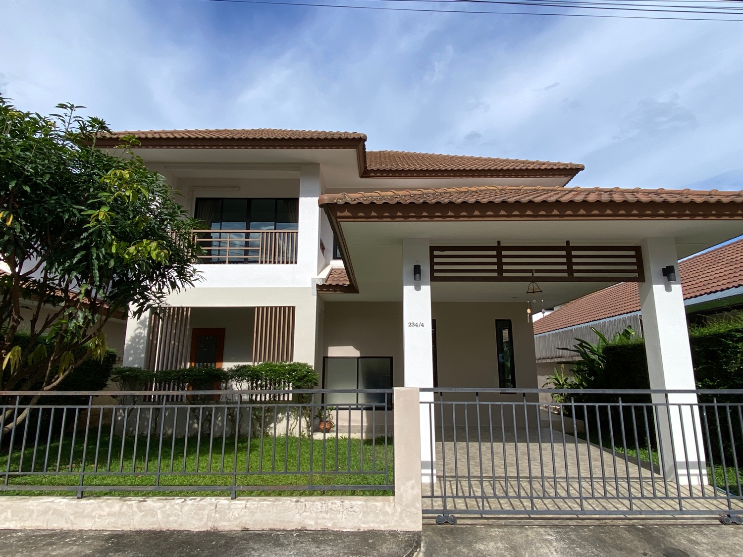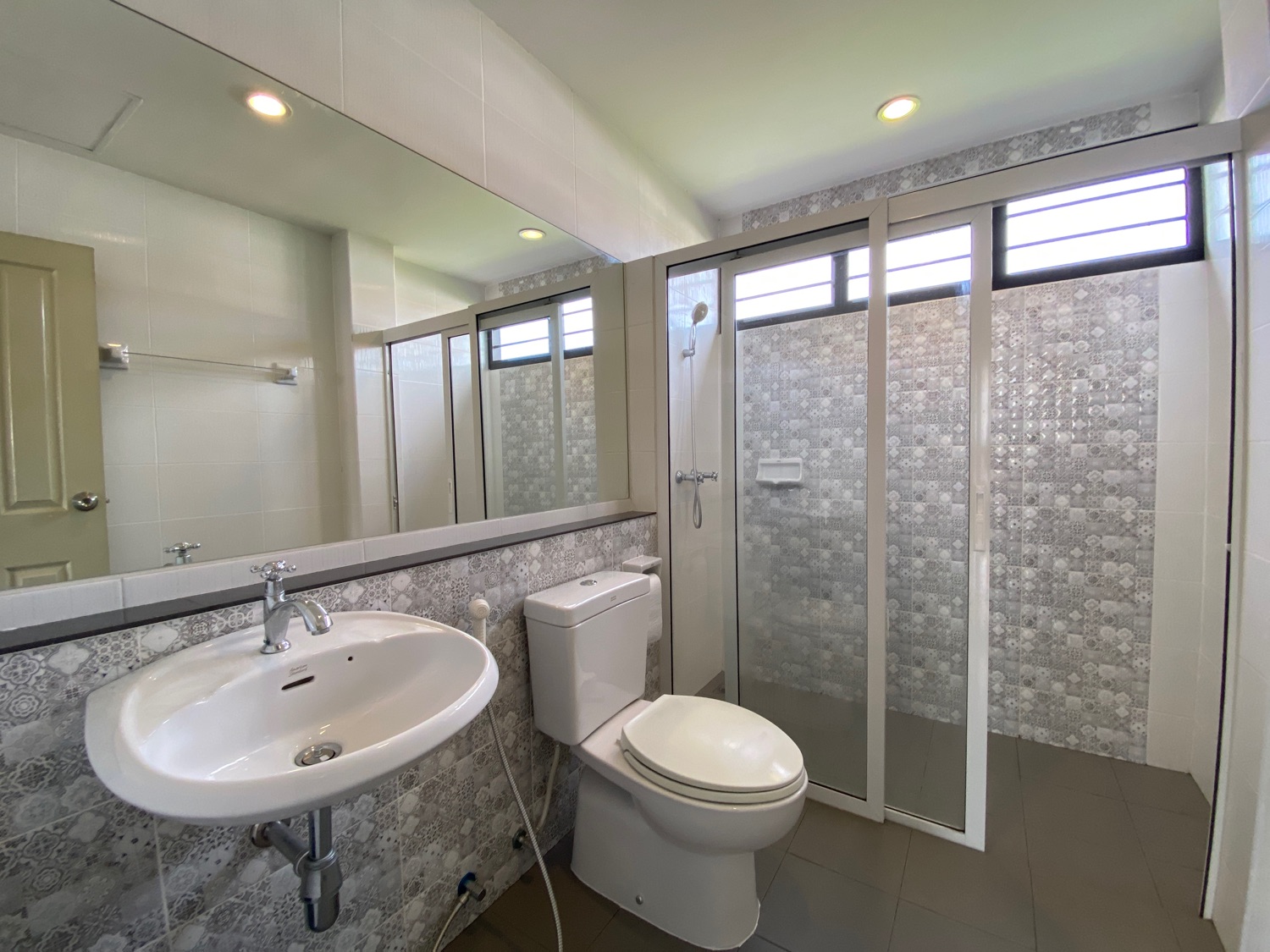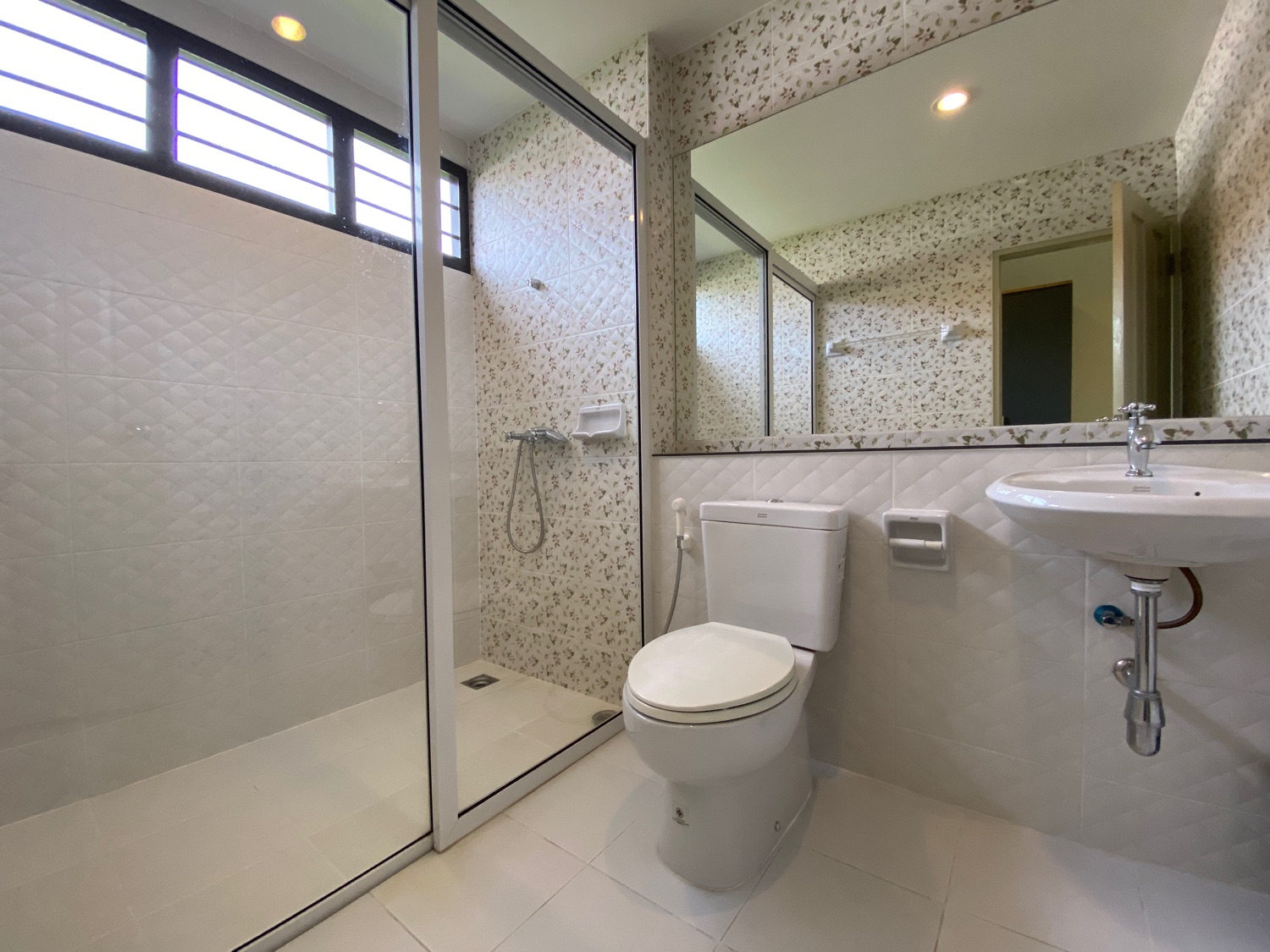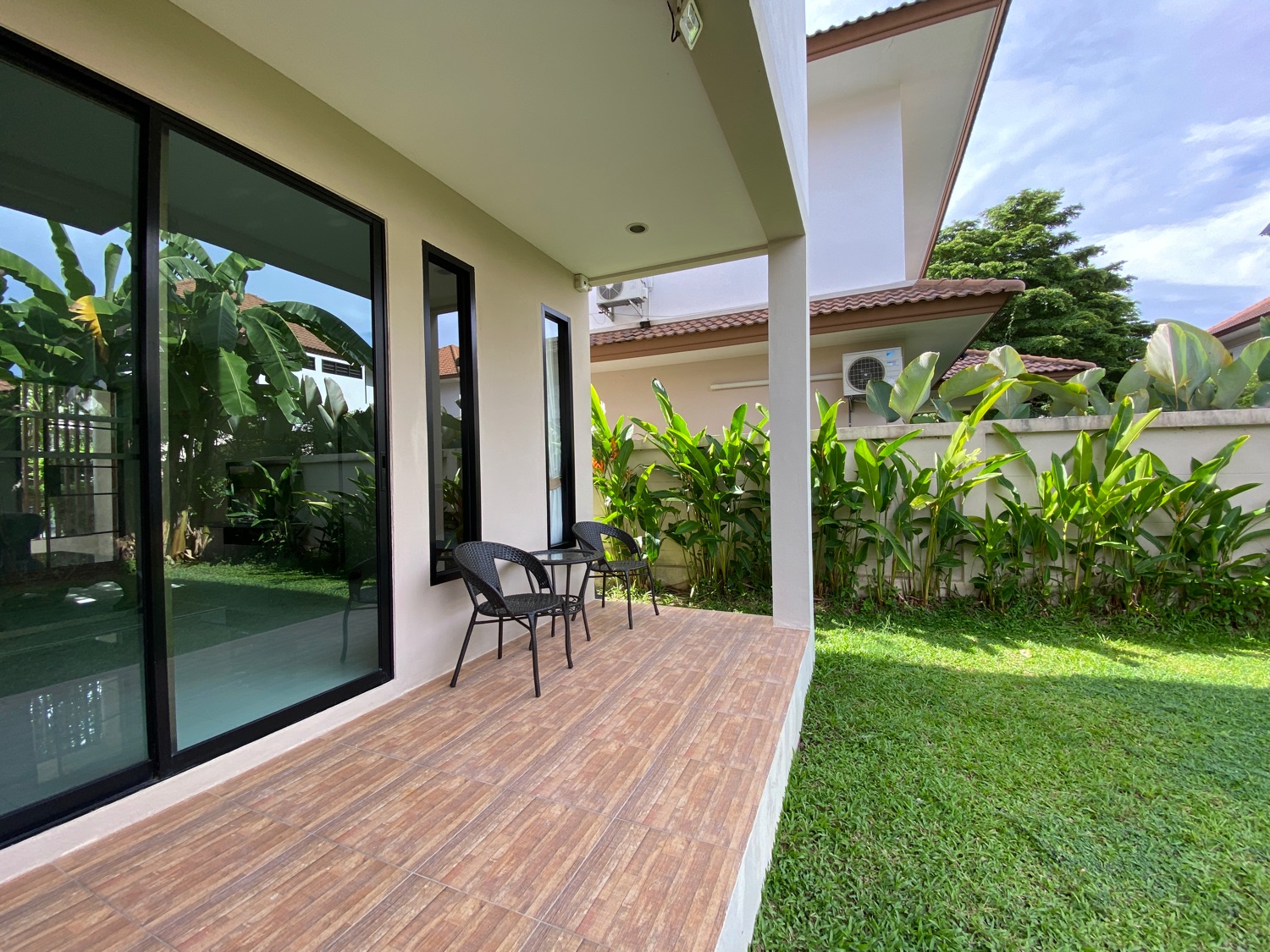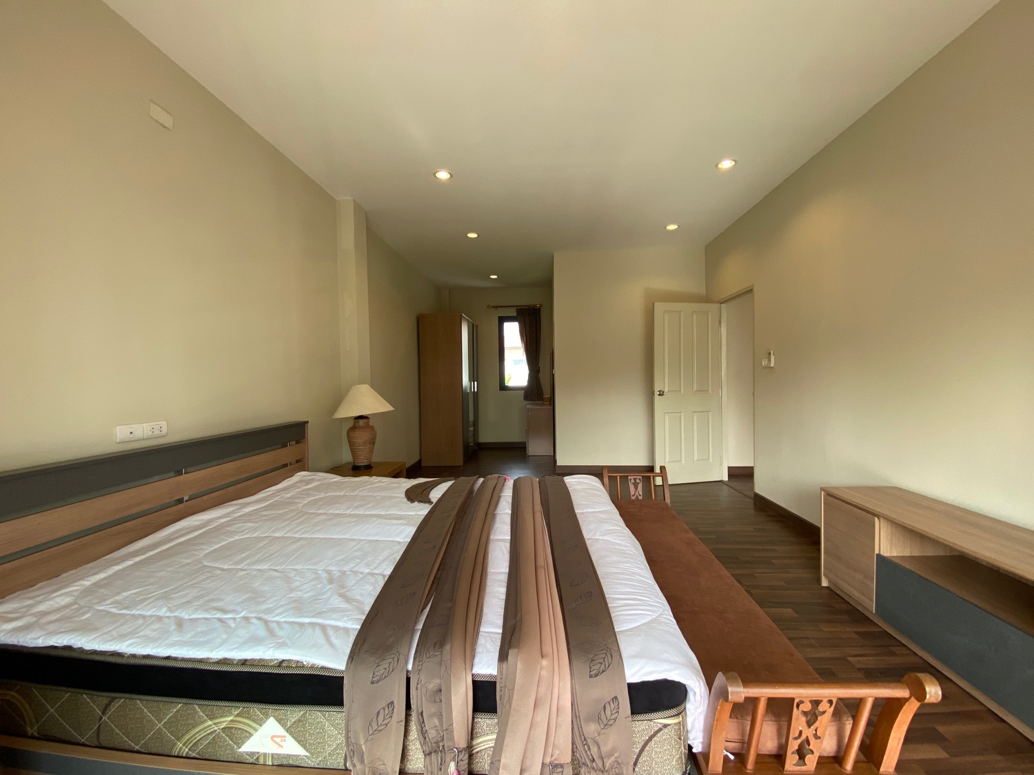 This house is located in a quiet gated project which only has 43 houses. It takes approximately 10 minutes from Central Festival Shopping Mall, Bangkok Hospital, Big C Extra Supermarket and Makro. There is a living, a guest bathroom, a dining, and a Western kitchen which has a brand-new oven, refrigerator, microwave and washing machine. There is access to the balcony and has seating area to enjoy an outdoor space. The second floor - there are 3 bedrooms, a master bedroom comes with an en-suite bathroom and another 2 bedrooms with a shared bathroom. This house is a good condition, rather new and good layout. It is airy and has a lot of natural light. The garden has a good space and is easy to take care of. There is one covered car park and there is a storage space outside by the car park. This project offers 24-hour security, a common swimming pool and a gym.