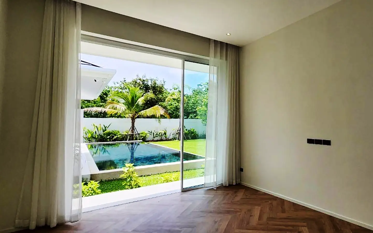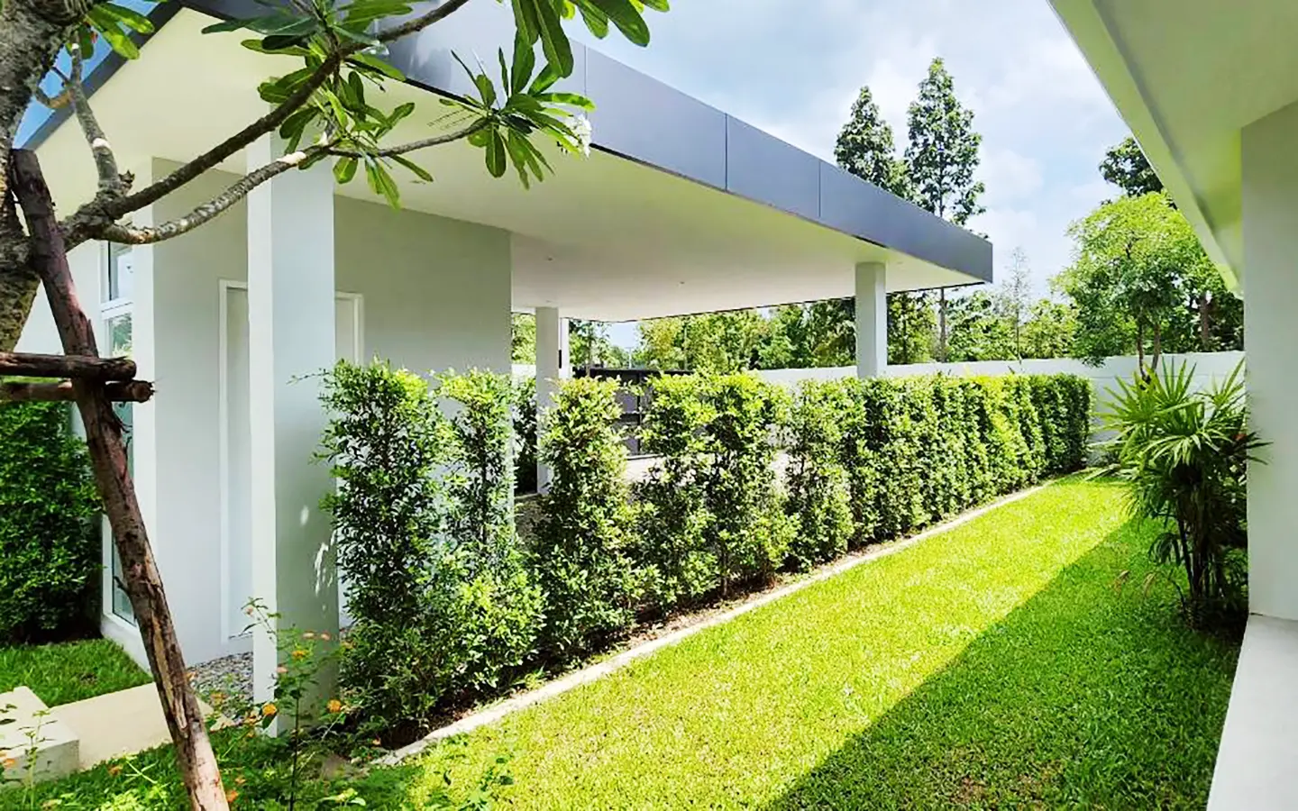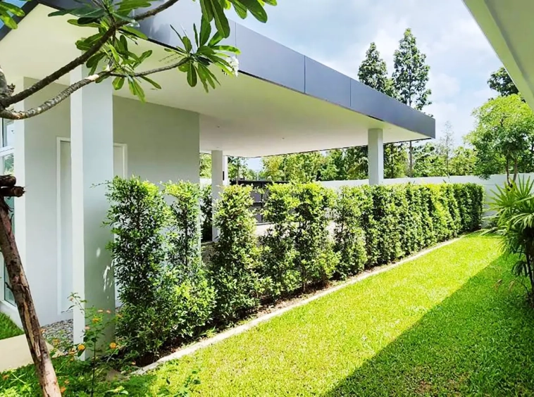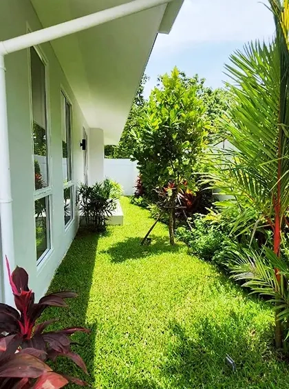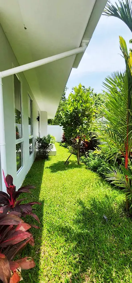 The 13m x 4m swimming pool is fitted with imported tiles and can be accessed directly from the spacious terrace. The terrace is partially covered to cater for both an outdoor dining area and sun deck/lounge area. Large trees have been planted already and grass has been laid out too, which for convenience is irrigated by an automated sprinkler system.