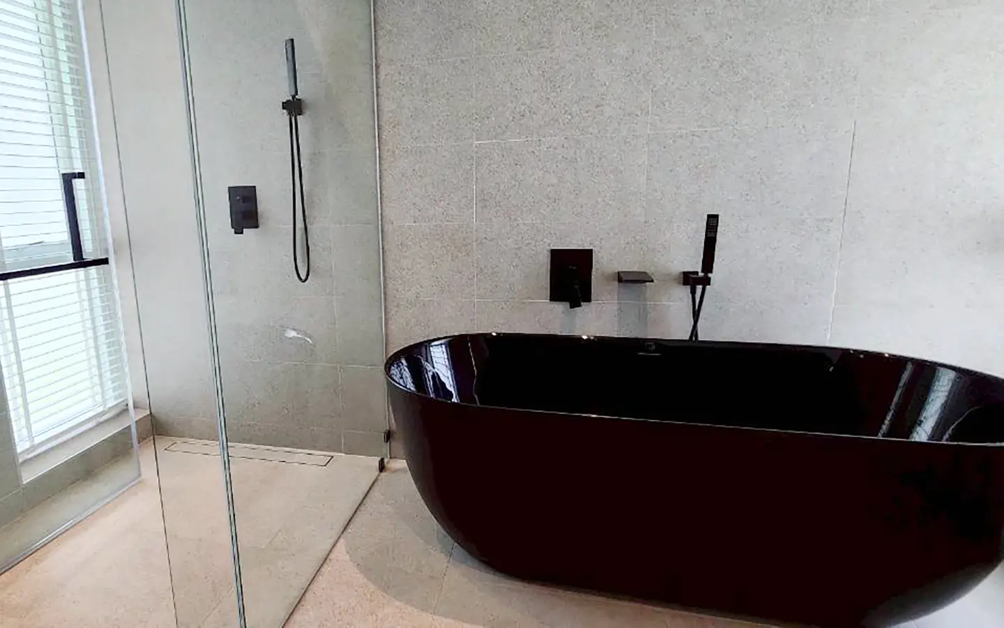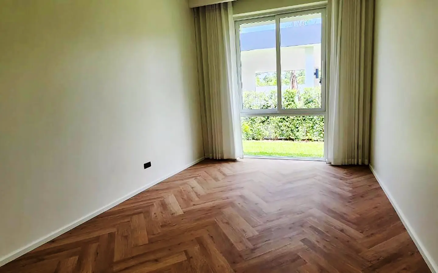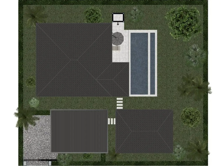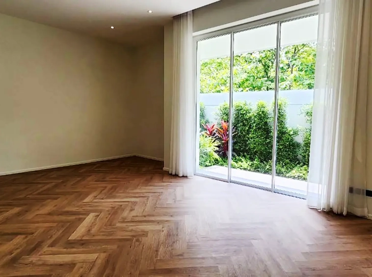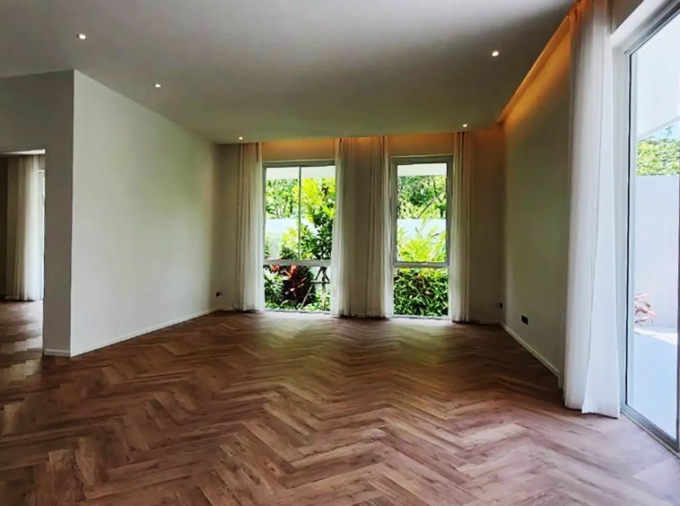 The 13m x 4m swimming pool is fitted with imported tiles and can be accessed directly from the spacious terrace. The terrace is partially covered to cater for both an outdoor dining area and sun deck/lounge area. Large trees have been planted already and grass has been laid out too, which for convenience is irrigated by an automated sprinkler system.
