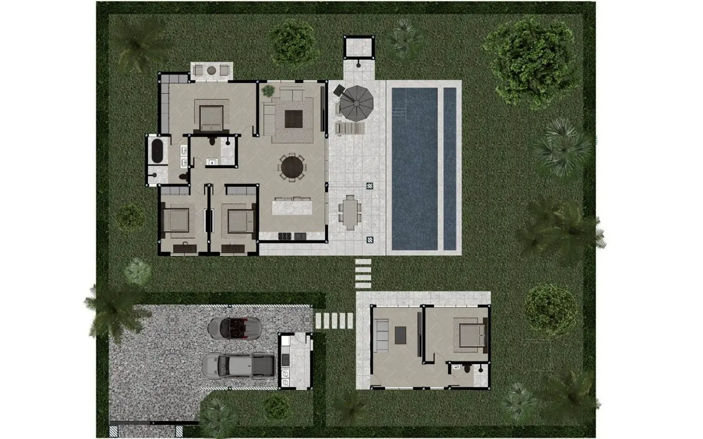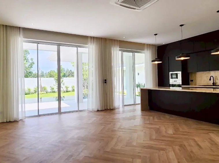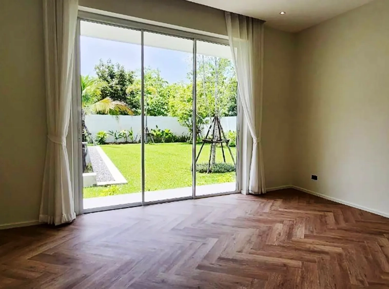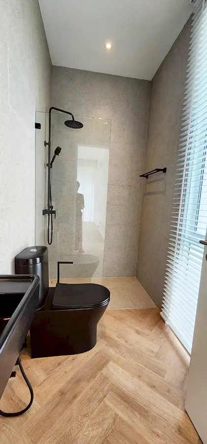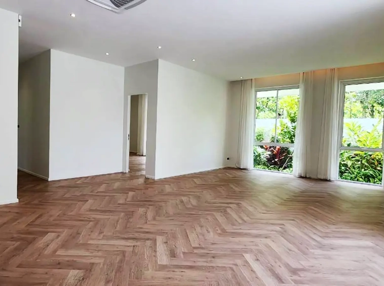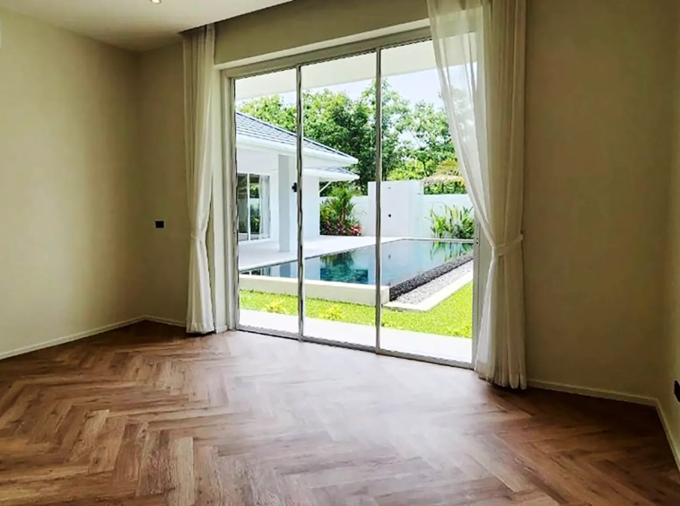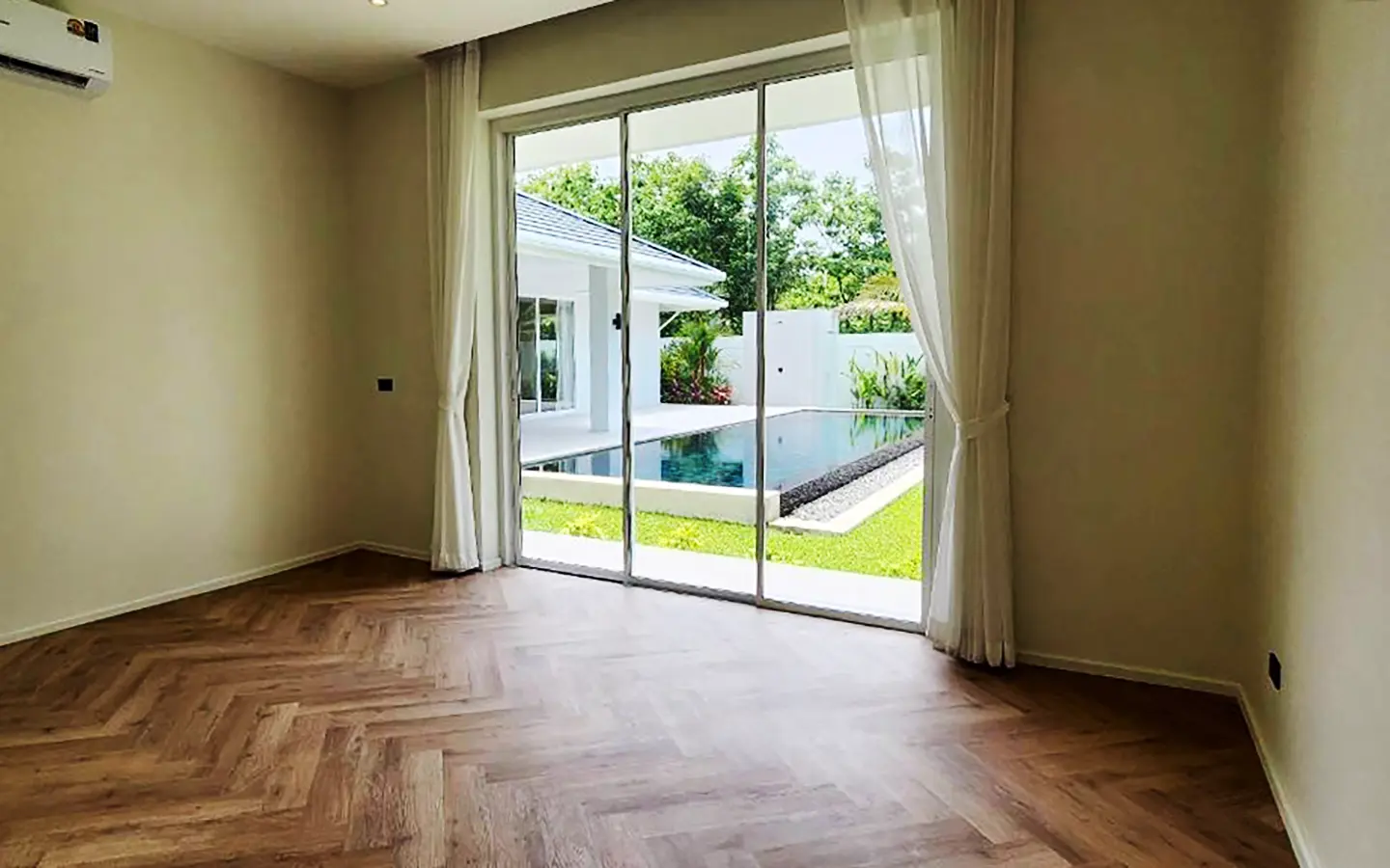Stunning 5-bedroom, 3-bathroom pool villa just entered the market and will not be available for long. The villa is situated in a tranquil and affluent neighbourhood in Namprae, Hang Dong, near some of the best international schools in Chiang Mai. The Residence is situated on almost 1,000 sqm of land, which is secured by a perimeter wall, an electric gate, and a CCTV system. The floor space was deliberately spread across 3 structures, whereas the master bedroom ensuite and 2 kids’ bedrooms with aare located in the main house, where a large living room and high-end kitchen form the centre guest bathroom living piece. The 2nd structure is the pool house which can serve various purposes depending on your needs, it could become the 4th and 5th bedroom, or two home offices or a combination thereof. Could also be used as a guest bedroom with living area, a granny flat, or a gym. The pool house also boasts a small yet fully functional bathroom. The carport forms the 3rd structure on the property and can hold 2 large-sized cars and conveniently has a storage/laundry room included.