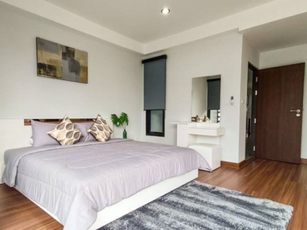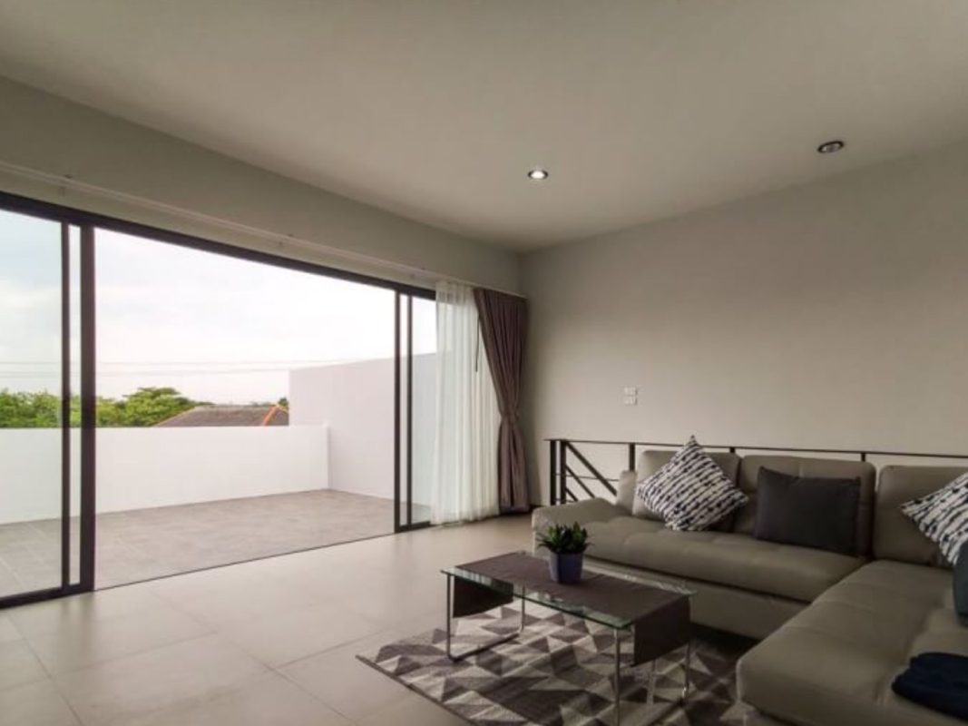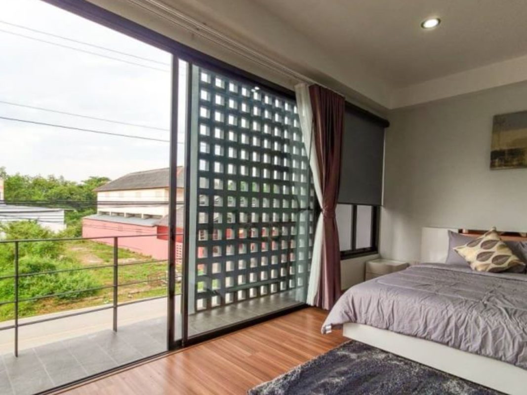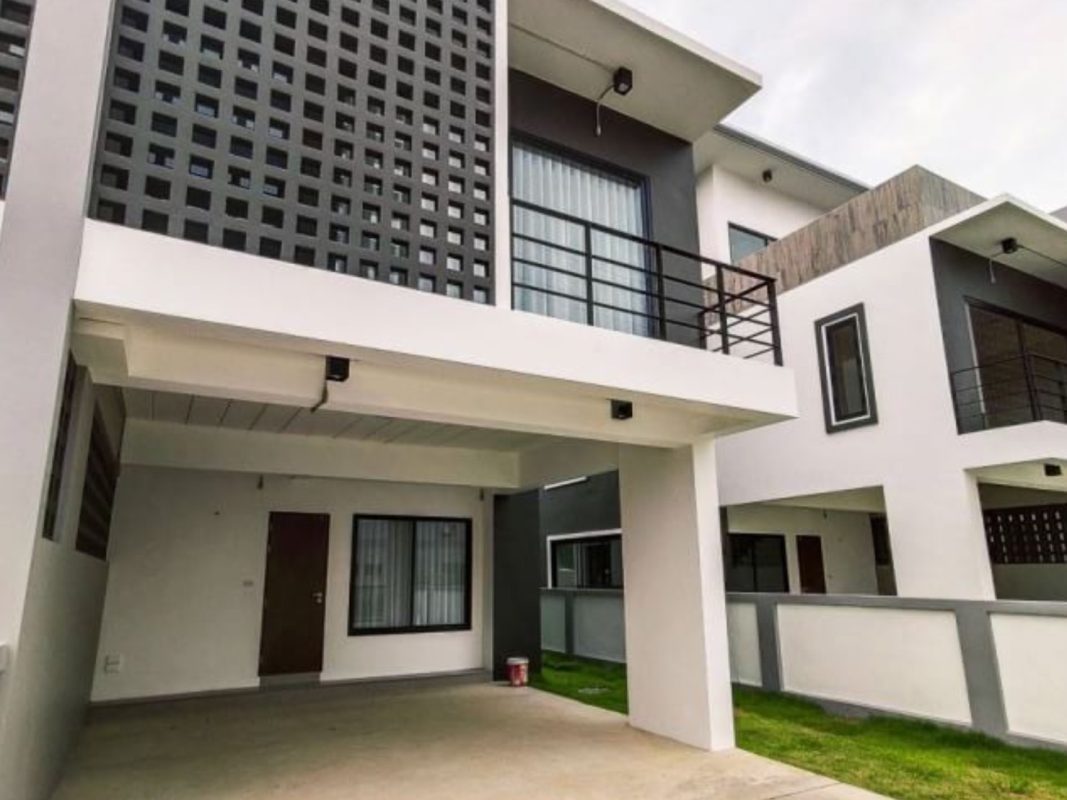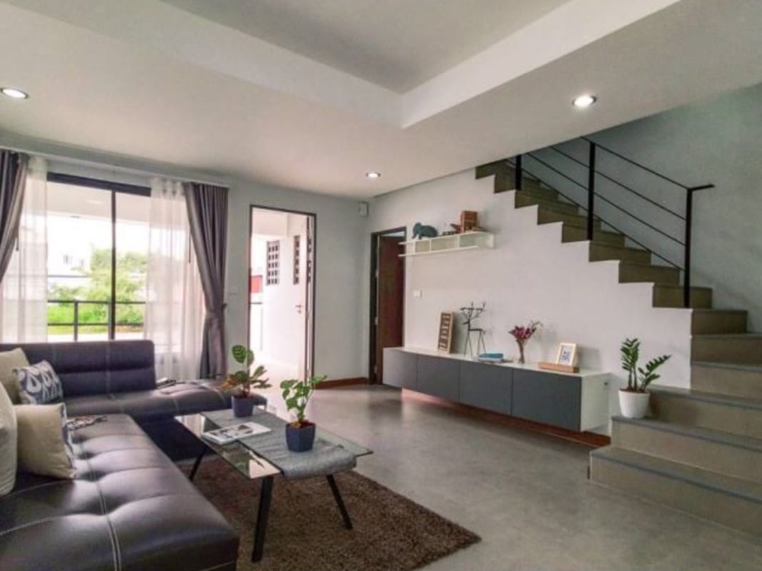 Brand new 6 townhouse project for sale in San Kamphaeng area of Chiang Mai. Located on the new San Kamphaeng just off the Outer Ringroad it is easy, less than 20 minutes, to get to the Superhighway and to Chiang Mai city center. It is also convenient to connect to Lamphun and other parts of Chiang Mai. About 25-30 minutes to reach the airport. The 3 storey townhouses are situated on a private road, each one having an 8-meter wide road frontage and occupying about 55-57Sqw. All have their parking for 2 cars, large terraces and backyard gardens. Each unit consists of 3 bedrooms, 4 bathrooms, a Western kitchen, large entertainment/theater room. The exterior is modern, the interior has pleasant earth-tone colors. The rooms are spacious, ceilings are high and many large glass windows provide good natural lighting. The project covers over 3 rais of land and is perfect for investment, whether to sell or lease out for holiday homes or as a retirement home. Great opportunity for long-term investment!